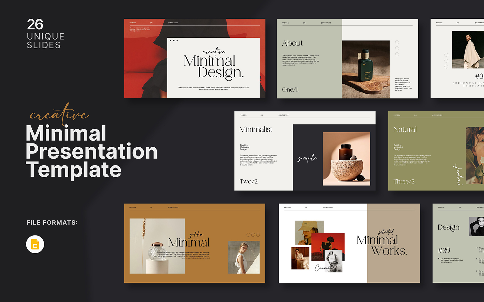 **Minimal Design/ Minimal Google Slides Presentation Template** Need to create a Minimal Google Slides Presentation Template document for your client?