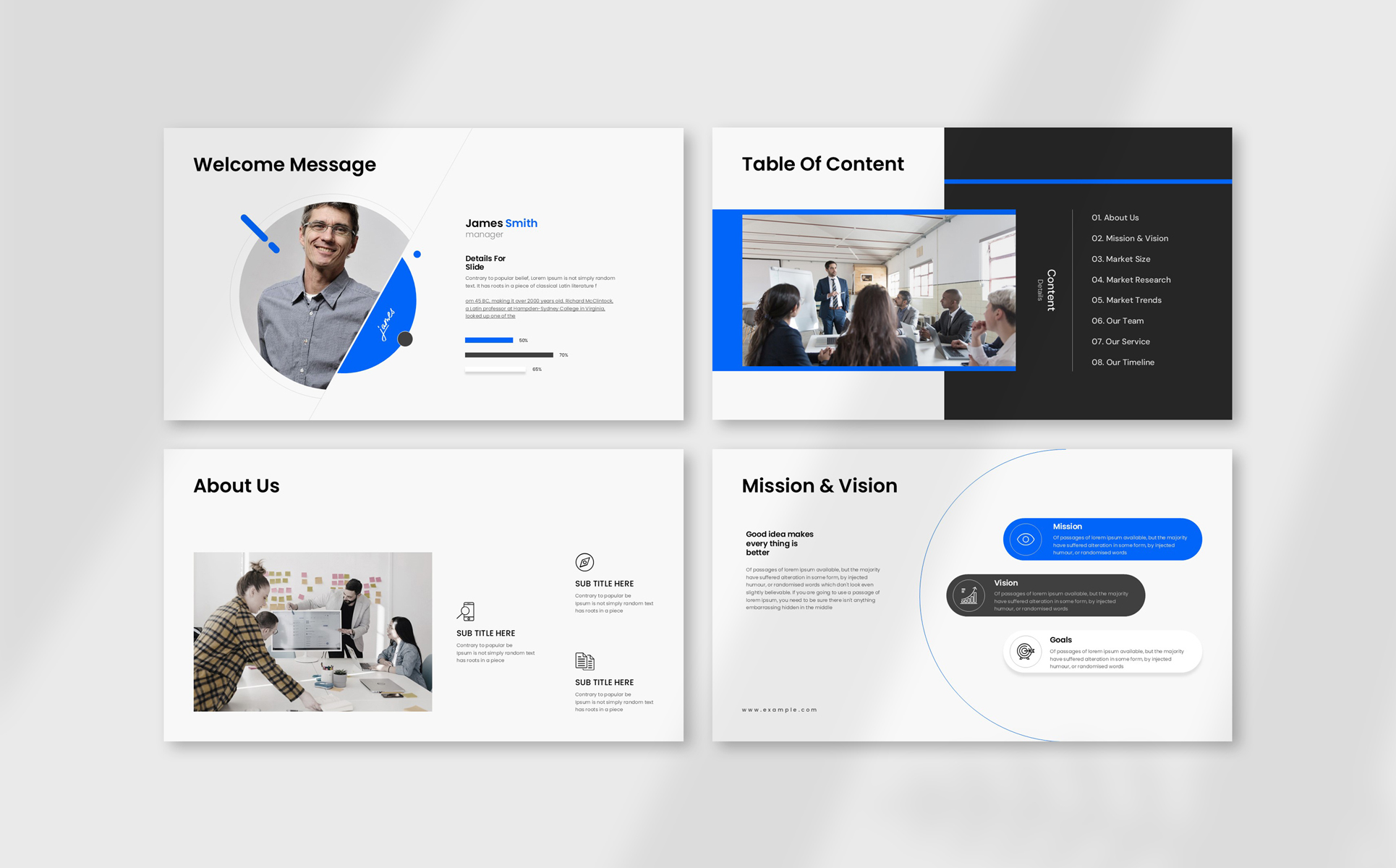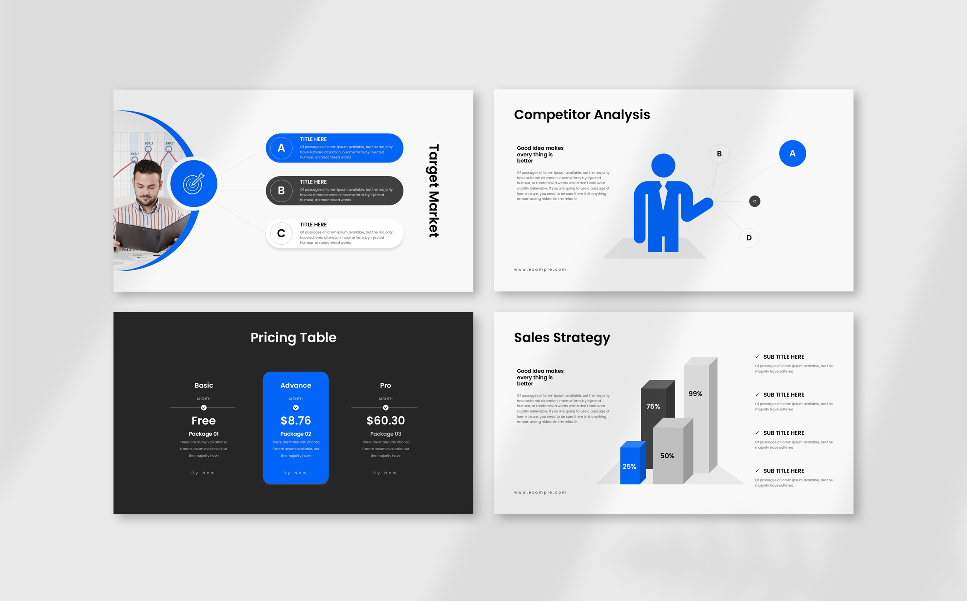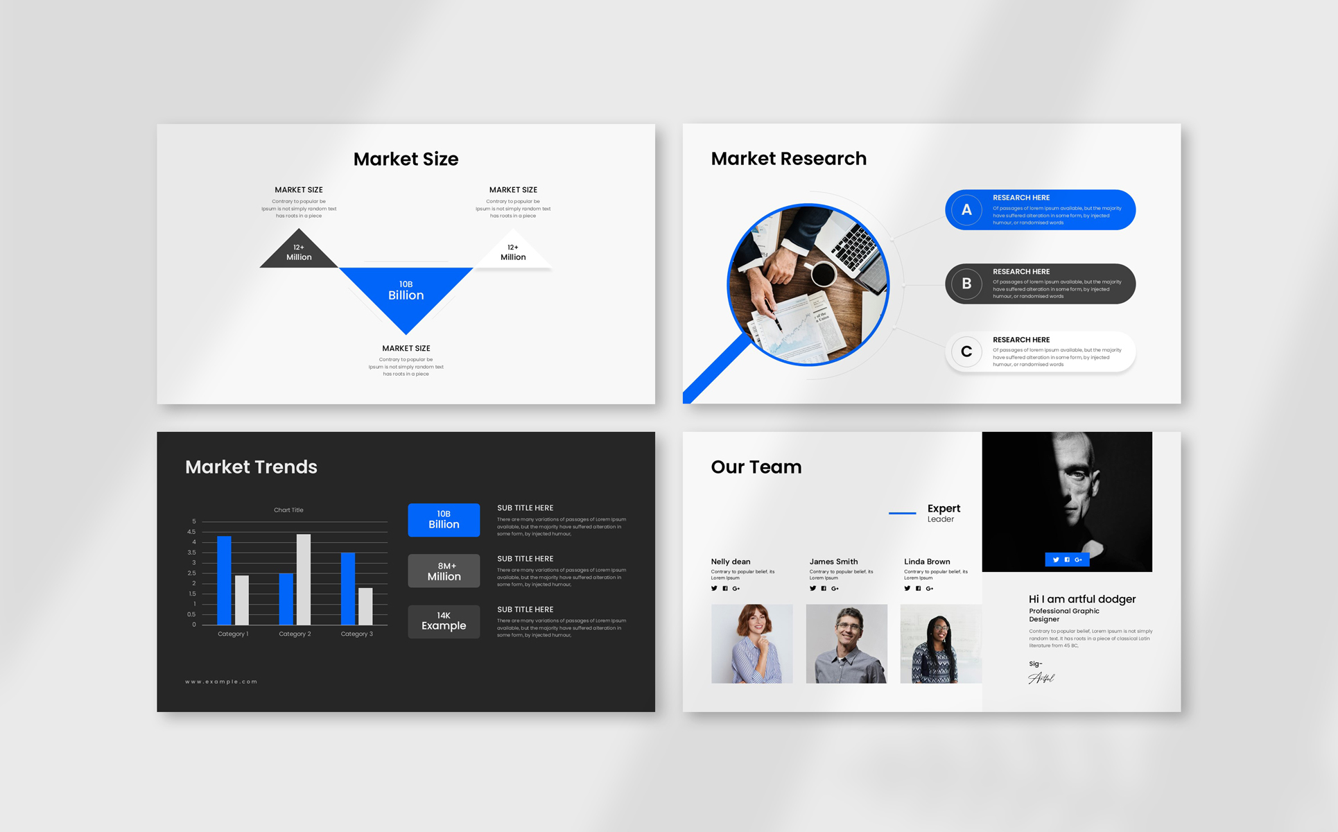 Export and send to clients as a pdf, pptx. Easy to replace typography and brand colors with your own.