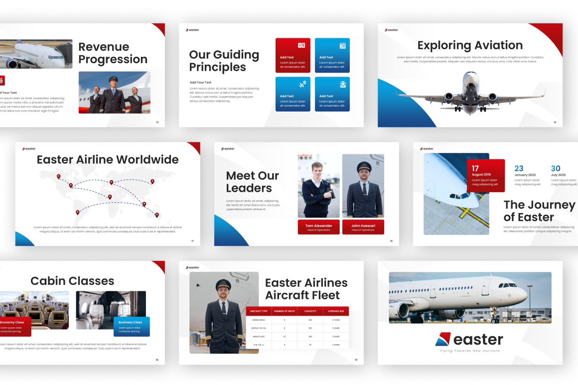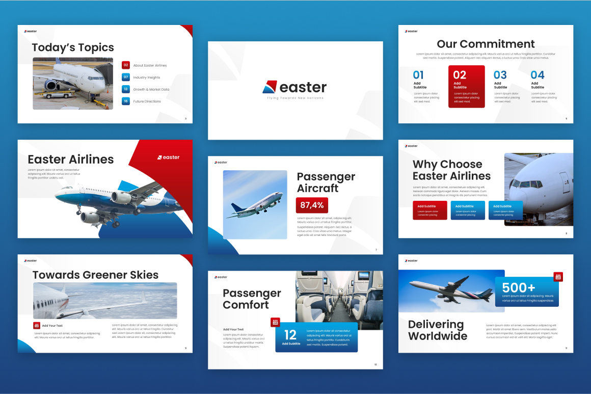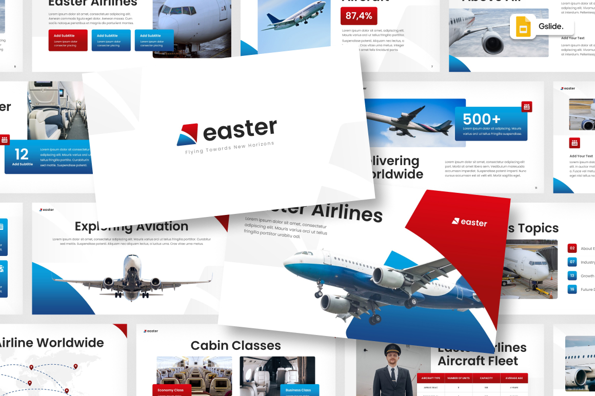 Elevate your presentations with the “Easter Airlines” Google Slides template. With 20 professionally designed slides, full animations, and easy editing capabilities, this template empowers you to create captivating and impactful presentations effortlessly. Impress your audience, deliver your message with style, and make a lasting impact. Download now and take your presentations to new heights!