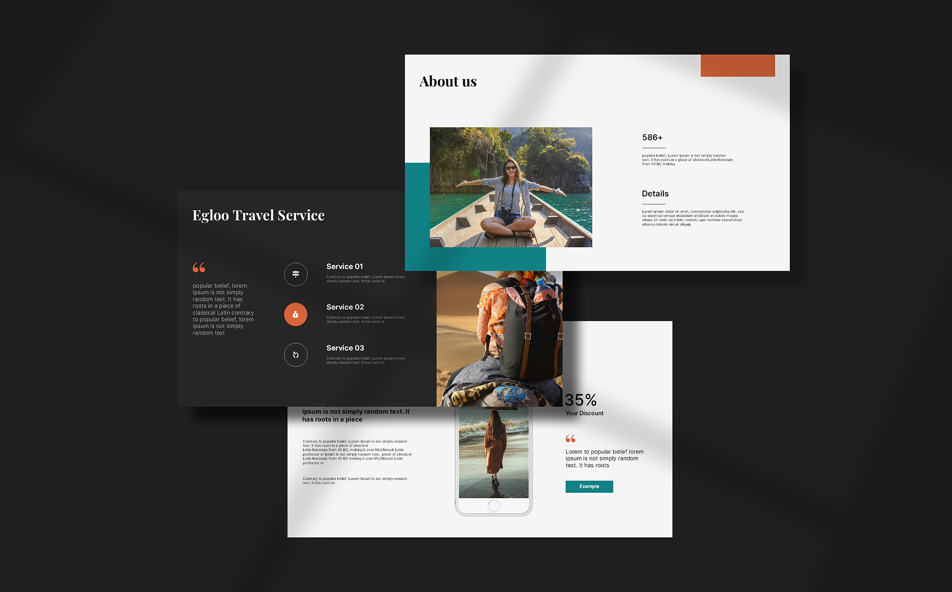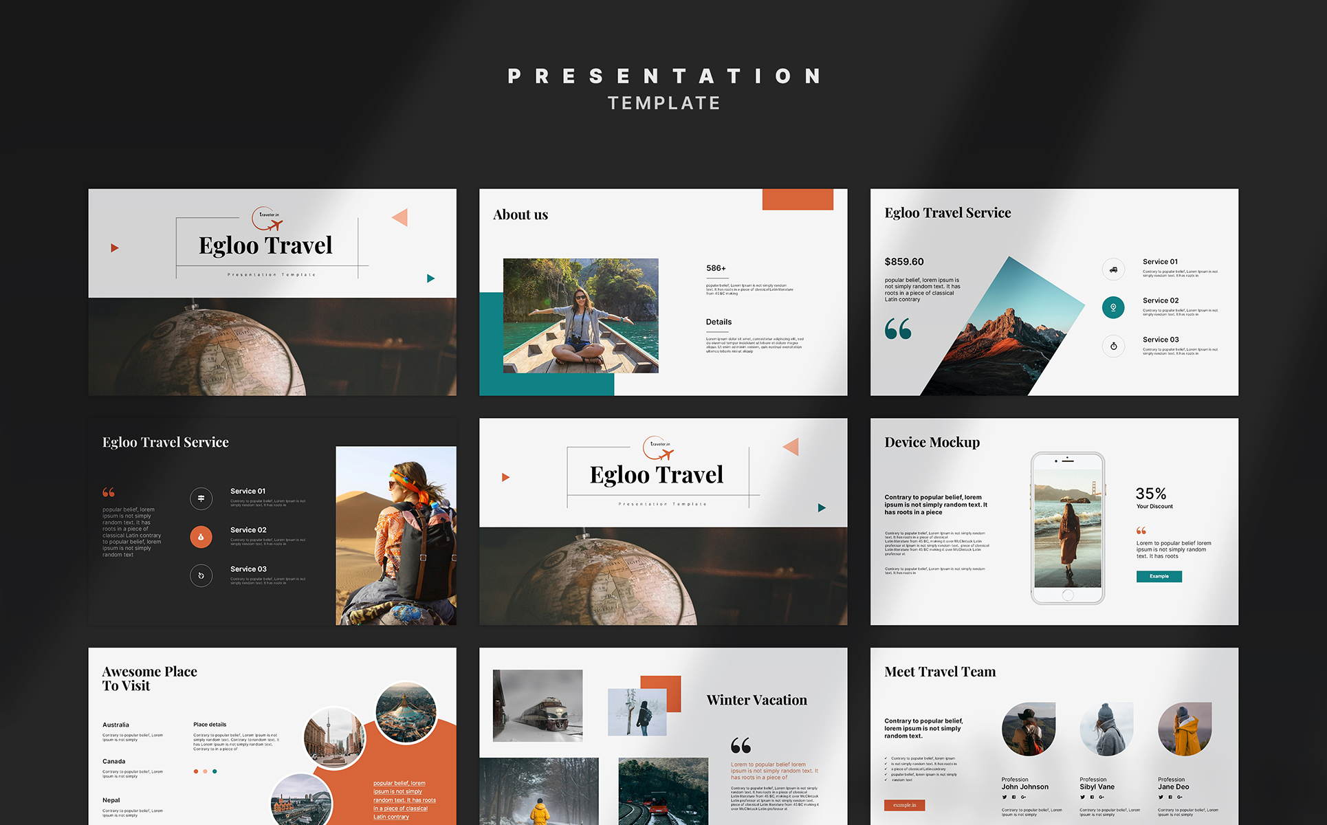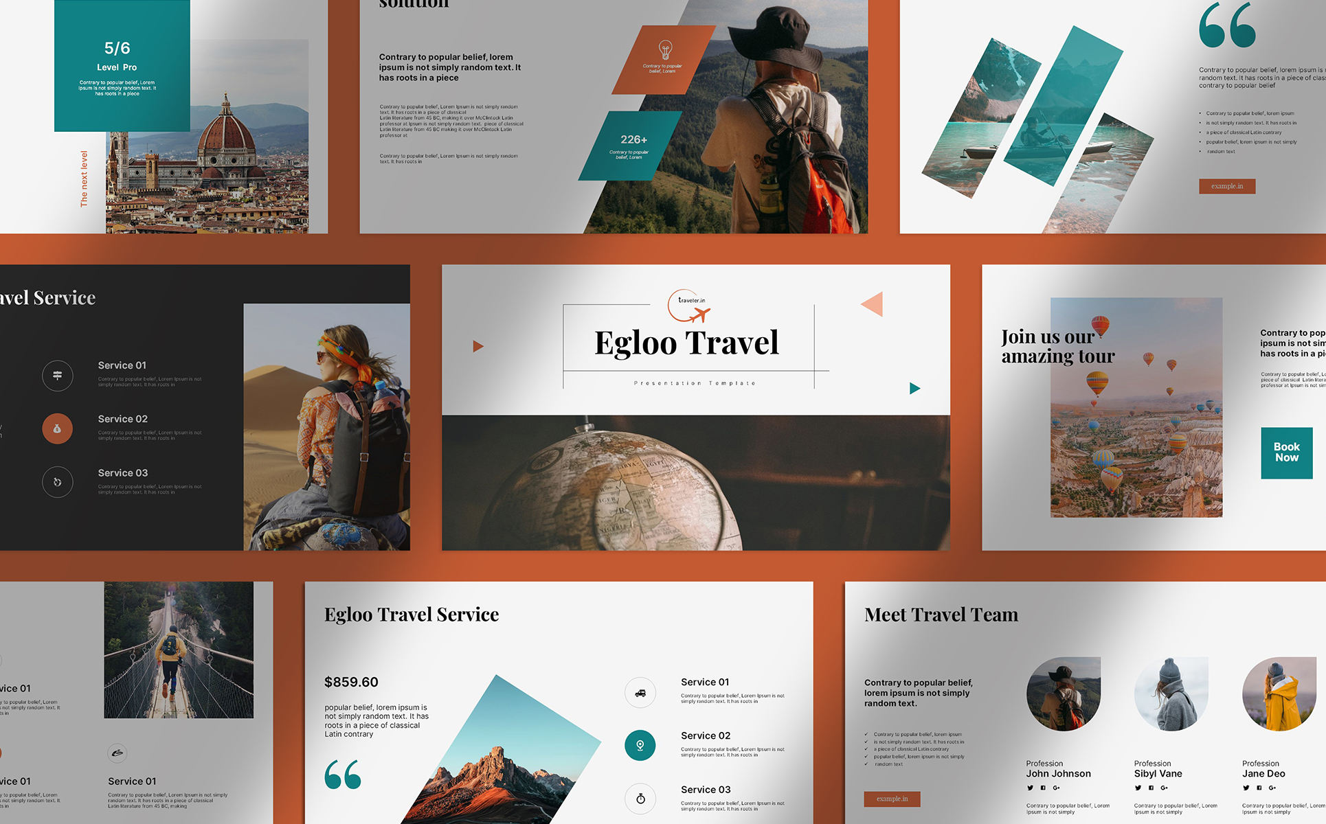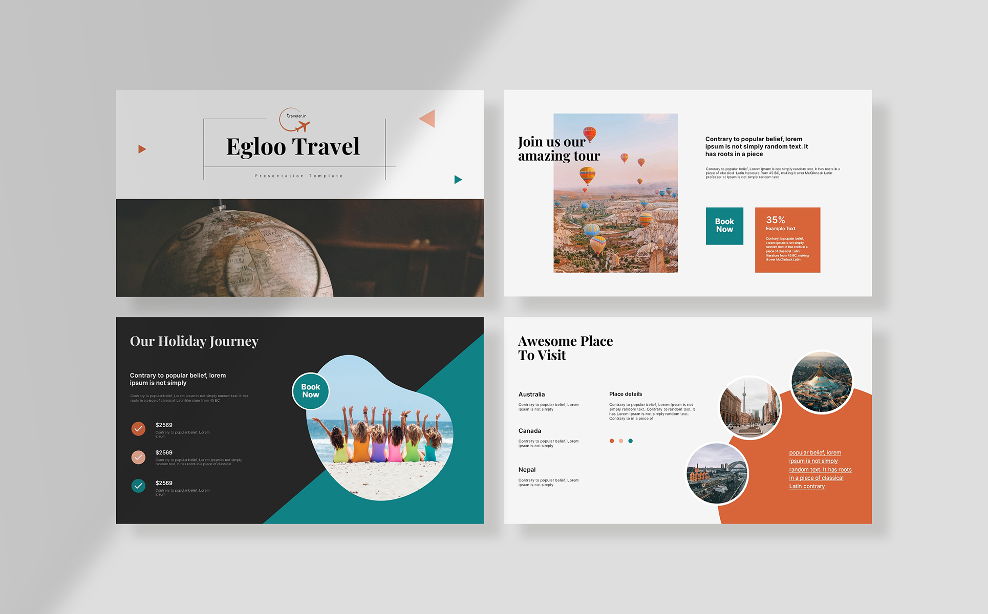 Egloo Travel Google Slide Presentation Template allows you to add your logo, and images and edit your brand colors and typography and you’re good to go. Please don’t waste your time, we’ve done all the hard work for you.