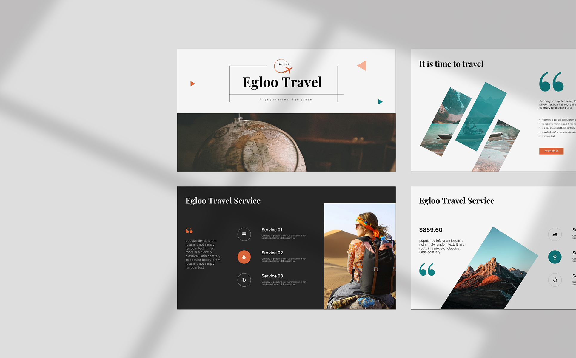 **Minimal Design/ Egloo Travel Google Slide Presentation Template** Need to create an Egloo Travel Google Slide Presentation Template document for your client?