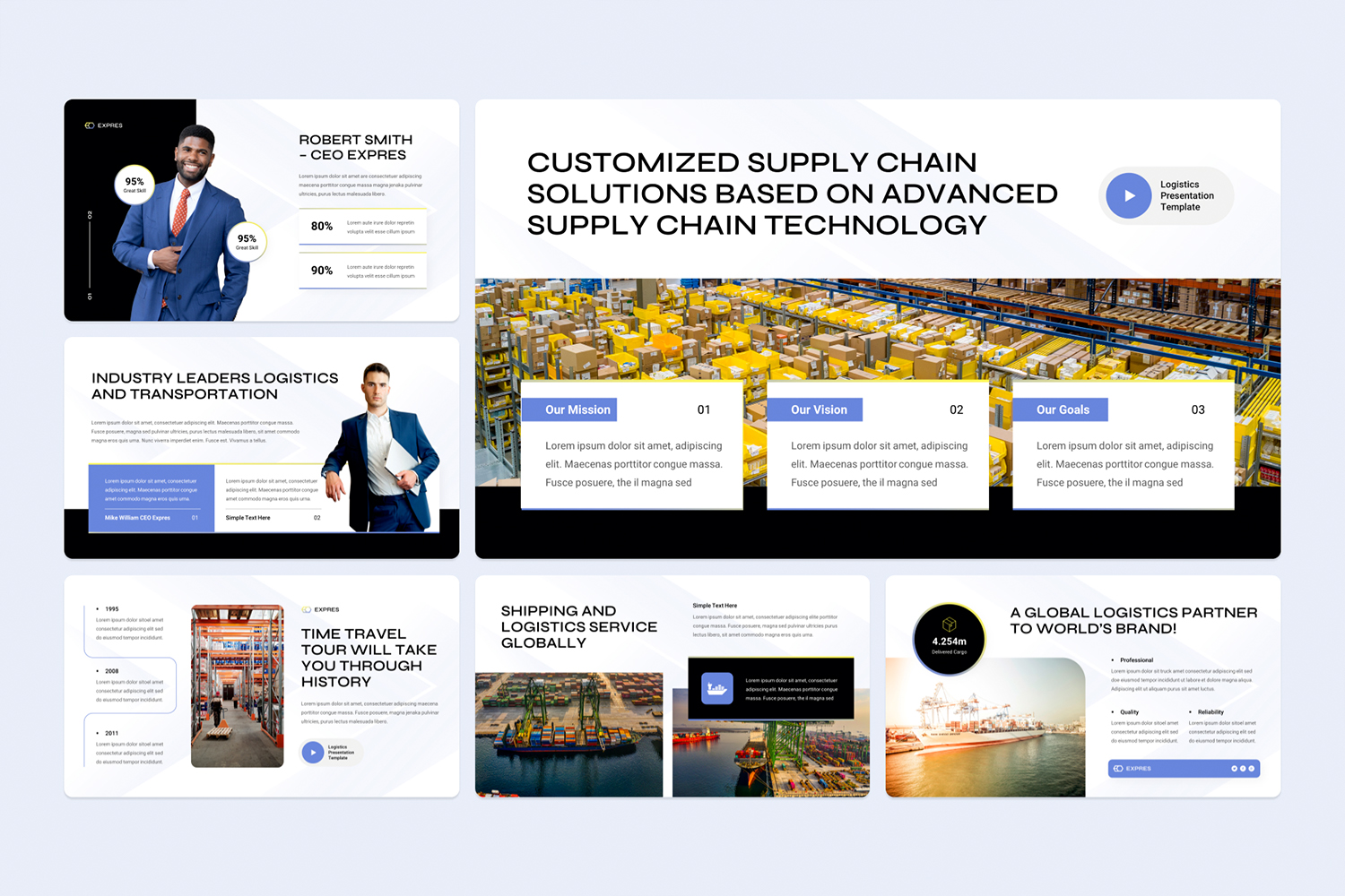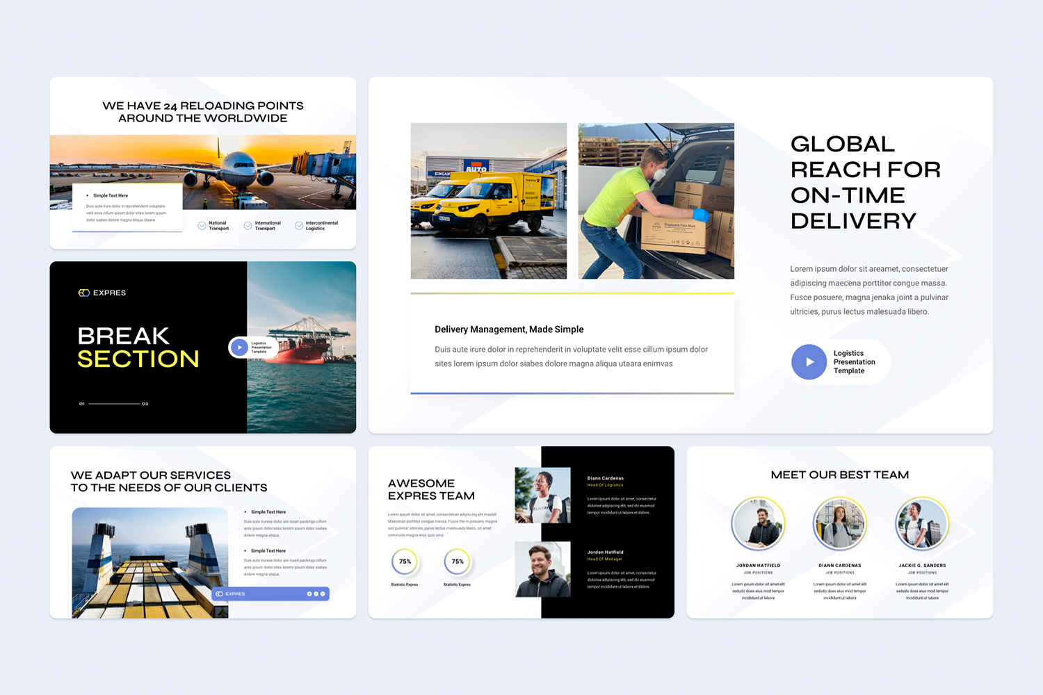 "Expres - Logistics Google Slide Template combines modern design with professional layouts for a truly captivating presentation. Showcase your designs with ease using its elegant, creative and unique features. Impress your audience with stunning visuals and dynamic."