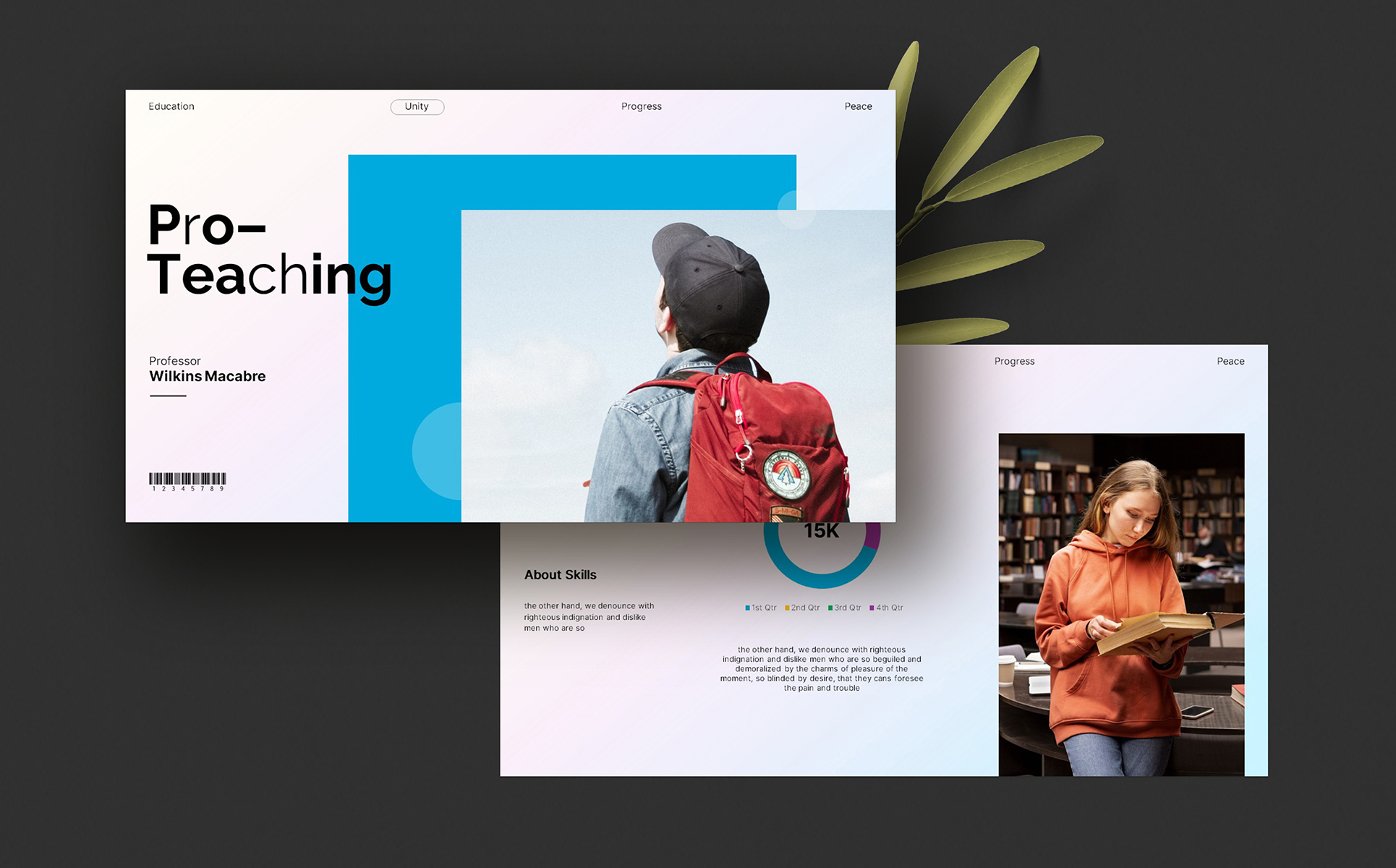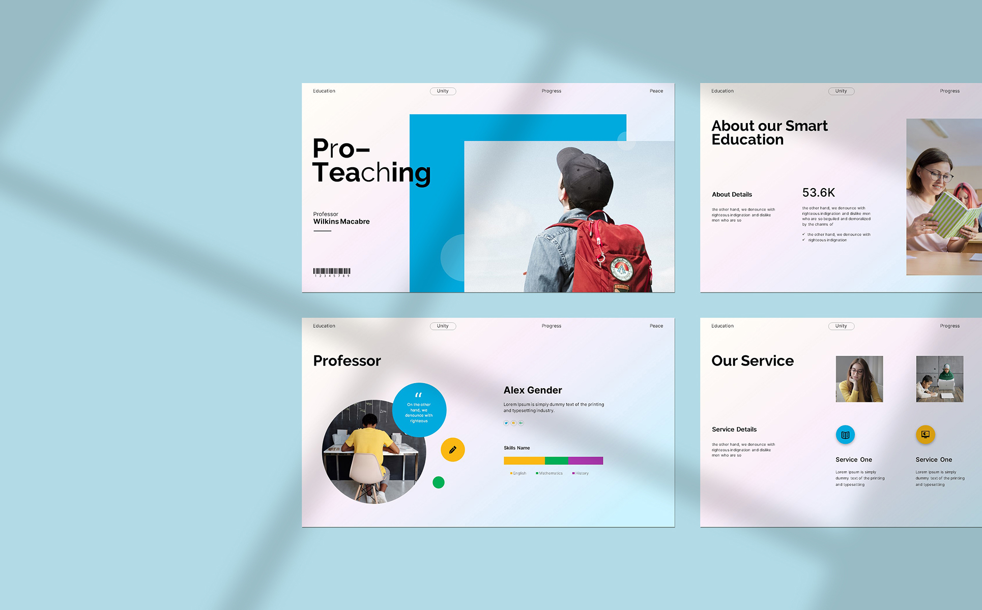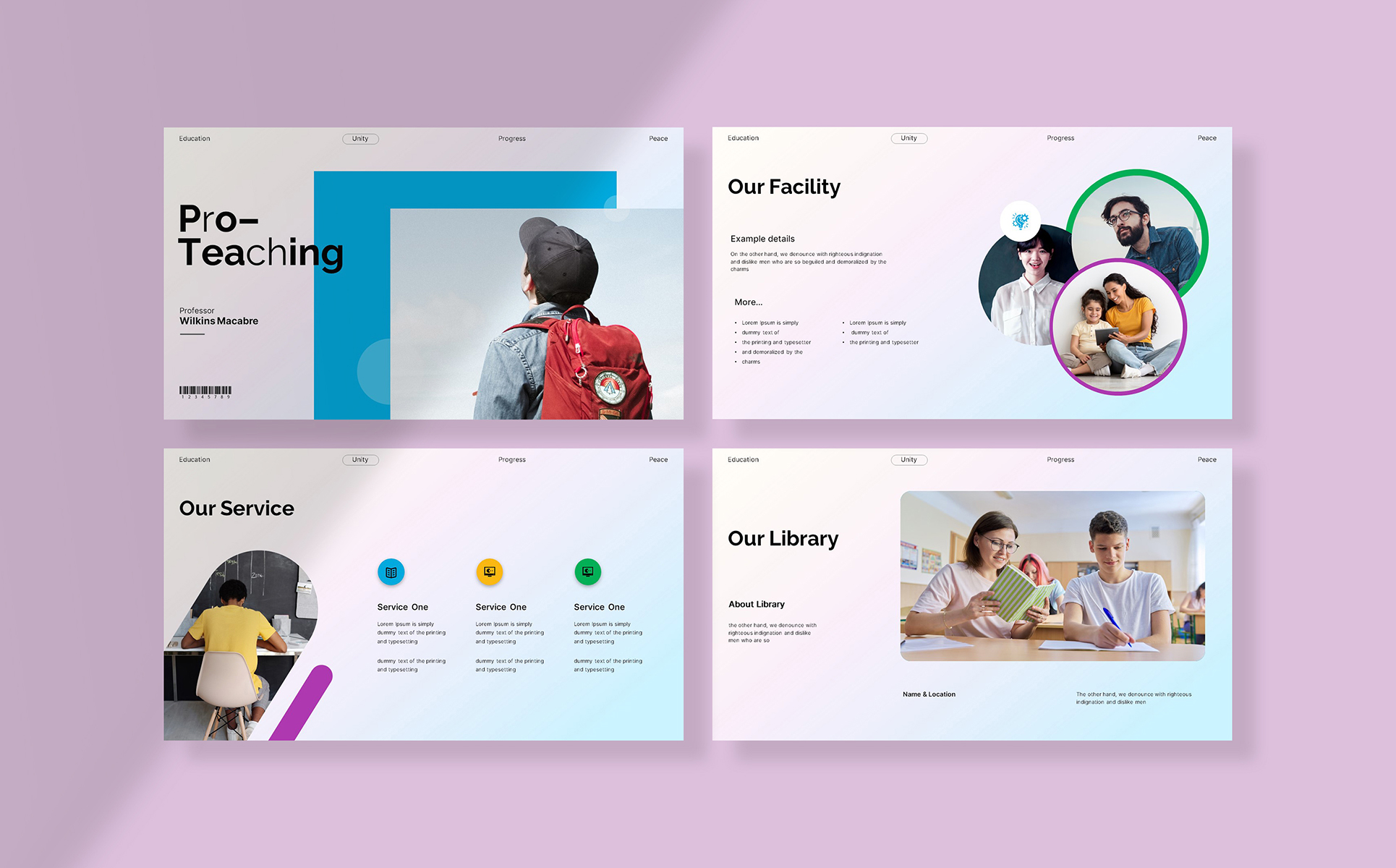 Education Google Slide Presentation template allows you to add your logo, and images and edit your brand colors and typography