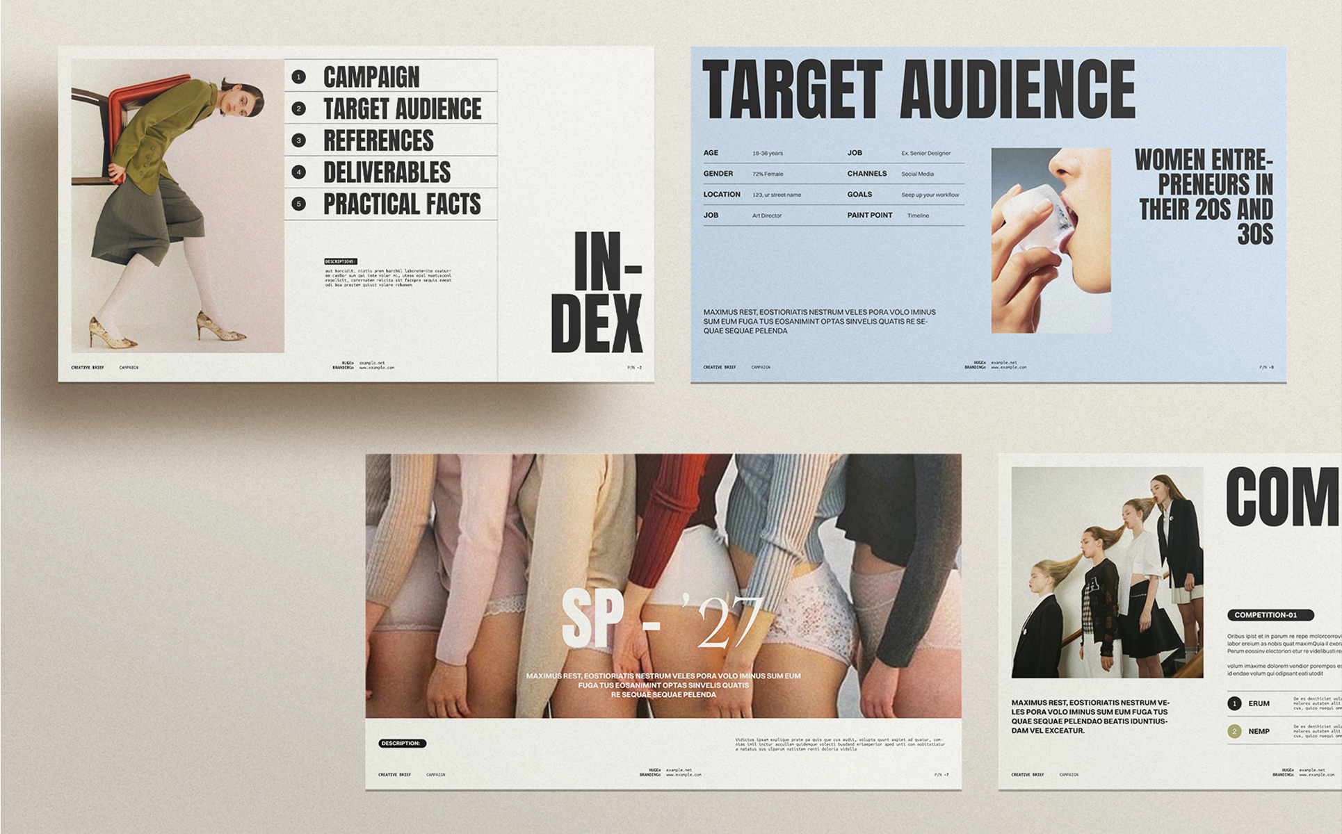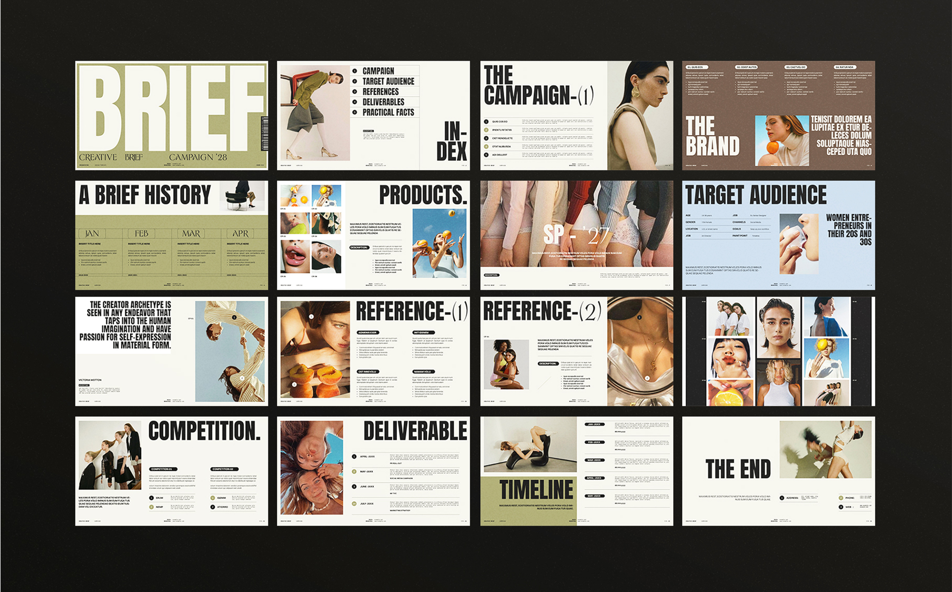 Creative Brief kit for designers, stylists, and photographers set is a series of 16 fully customizable pages Google Slides.