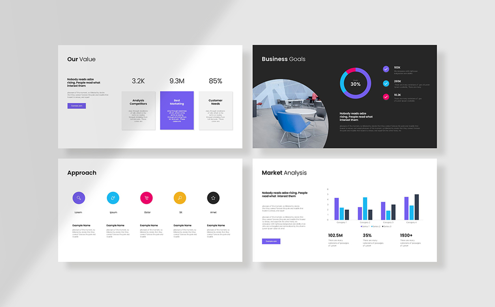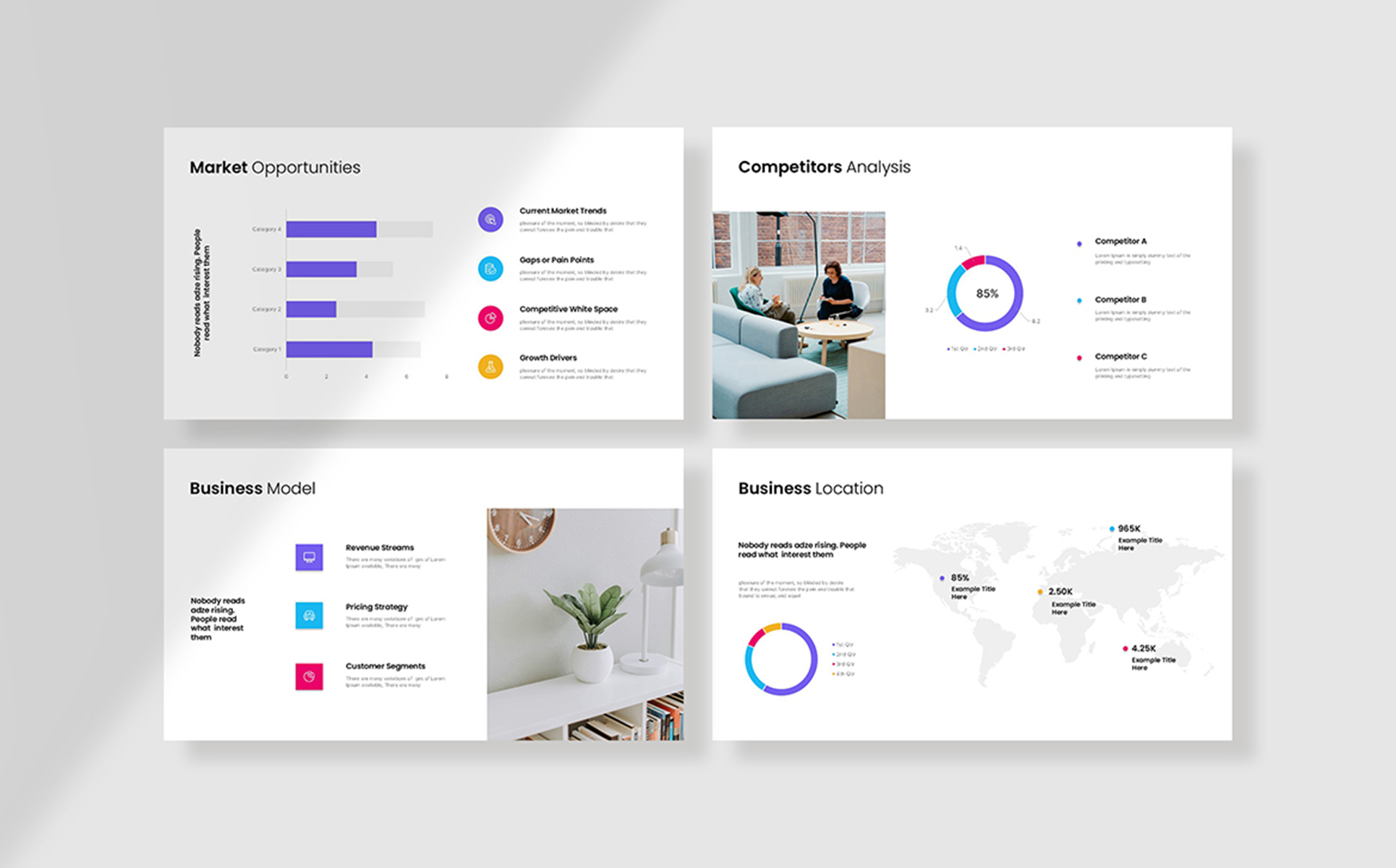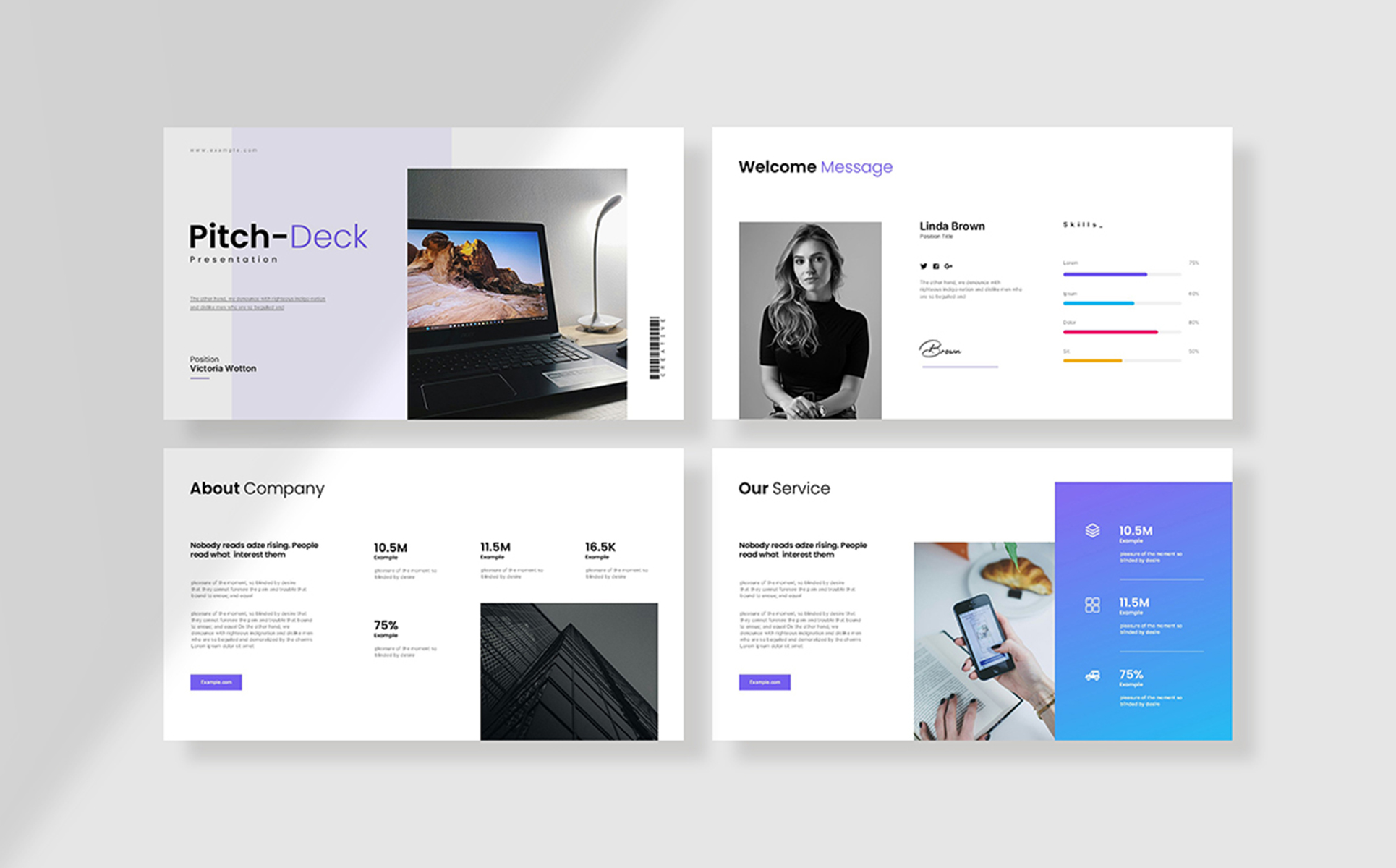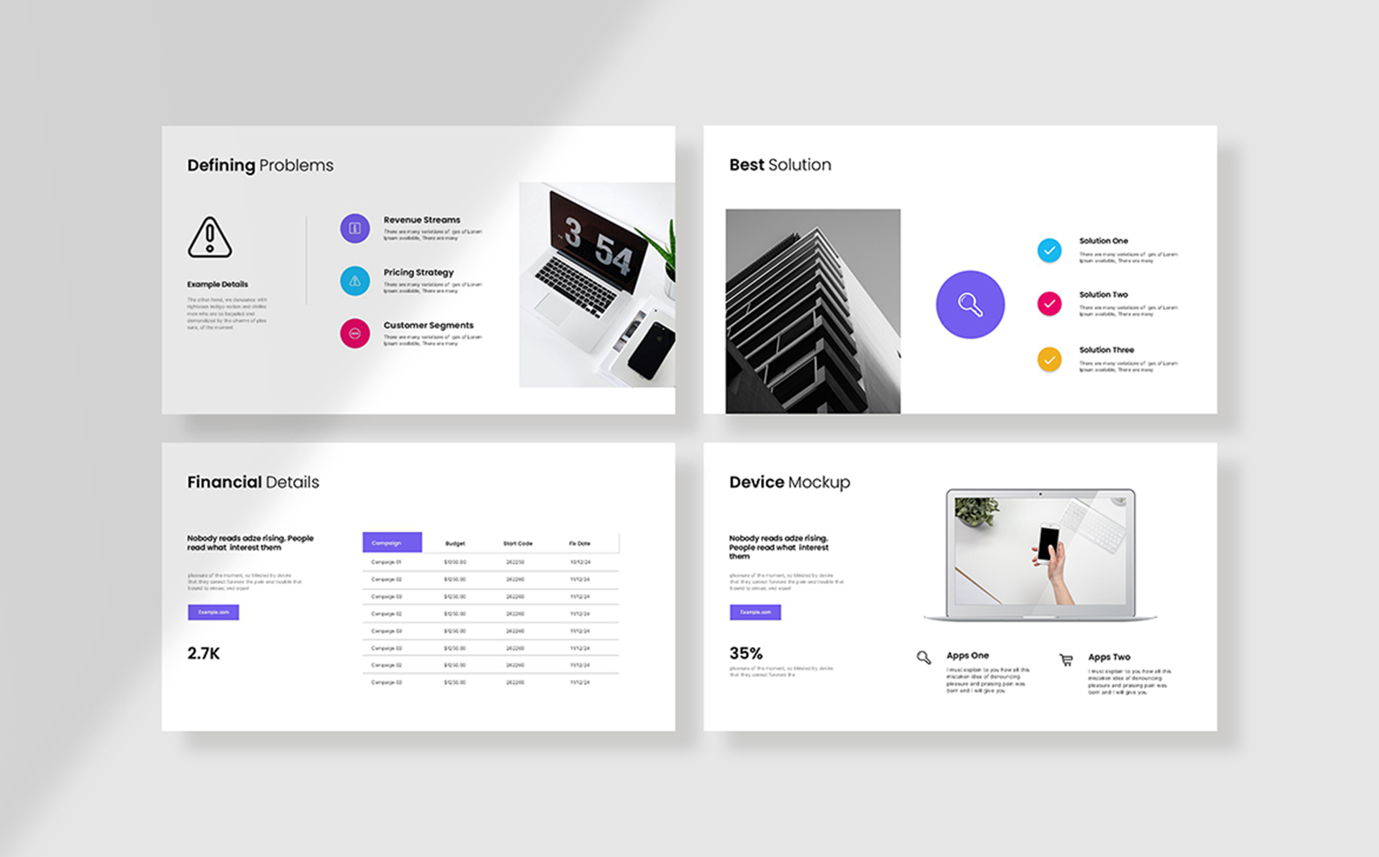 Export and send to clients as a pdf,pptx. Easy to replace typography and brand colors with your own.