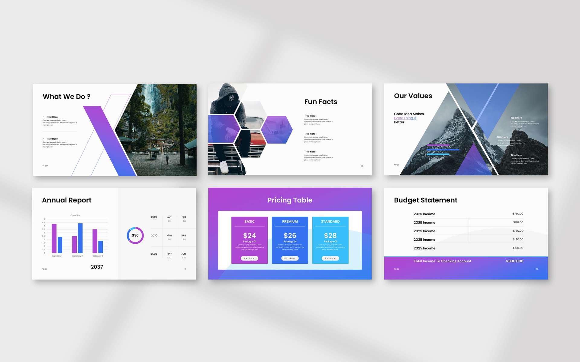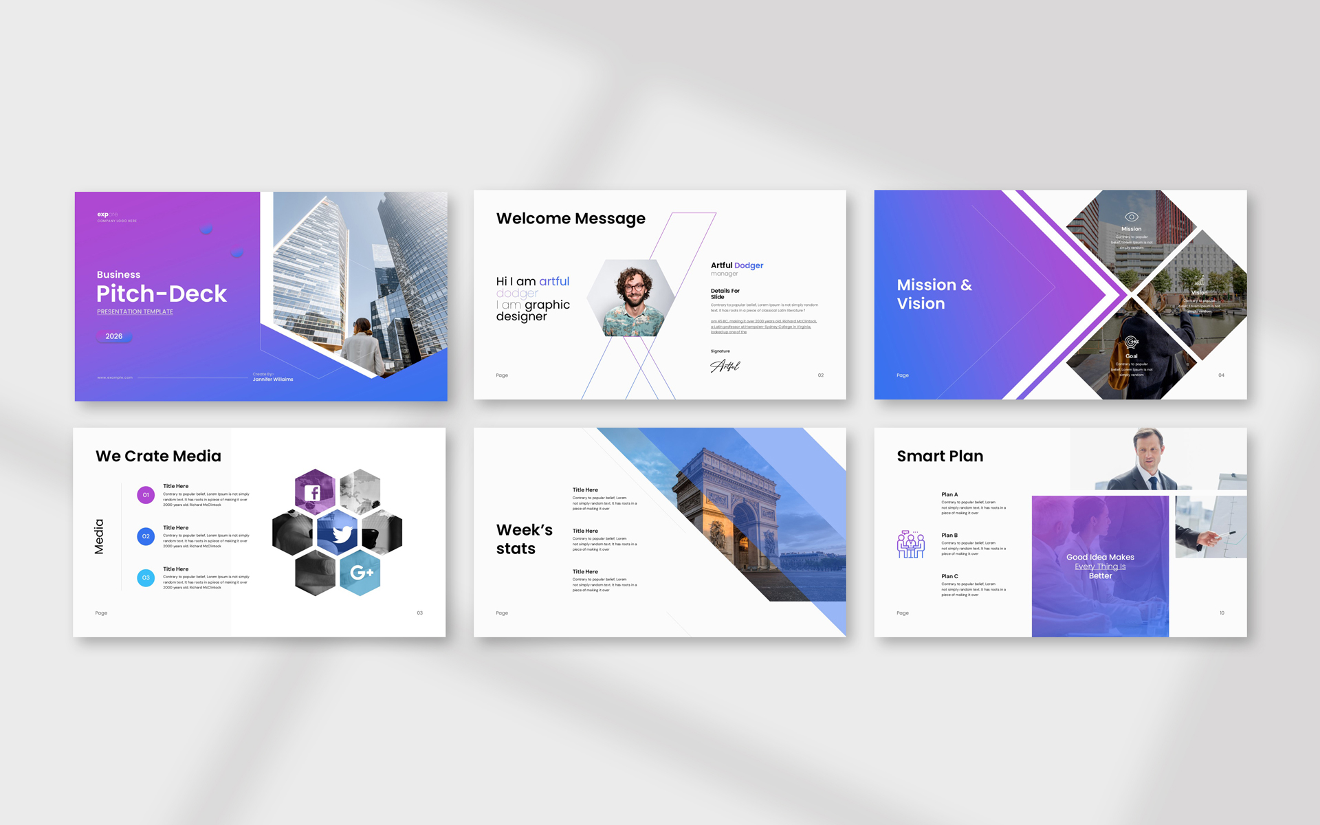Export and send to clients as a pdf, PPTX. Easy to replace typography and brand colors with your own.