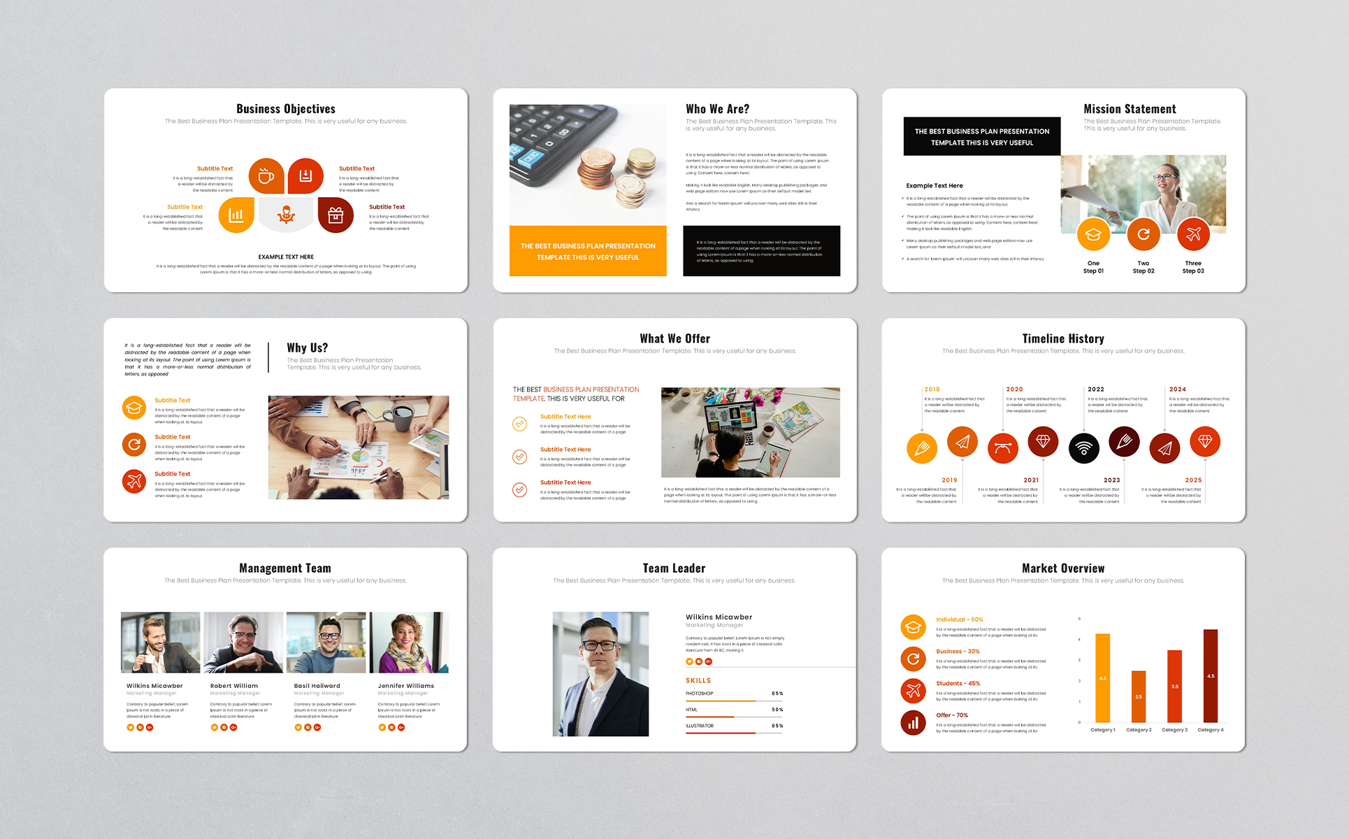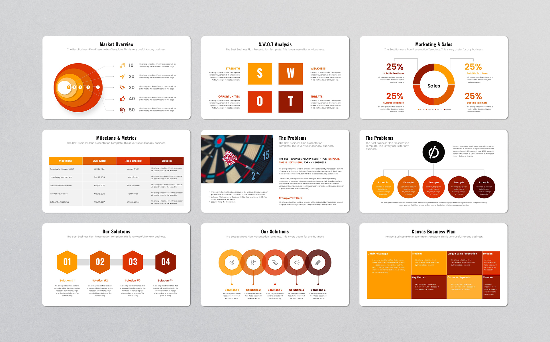 Business Plan Presentation Template is created very carefully for use any kinds of business. Powerful feature, business plan has been monitored. This is very useful for any business. Business levels are well structured. All elements 100% Editable.
