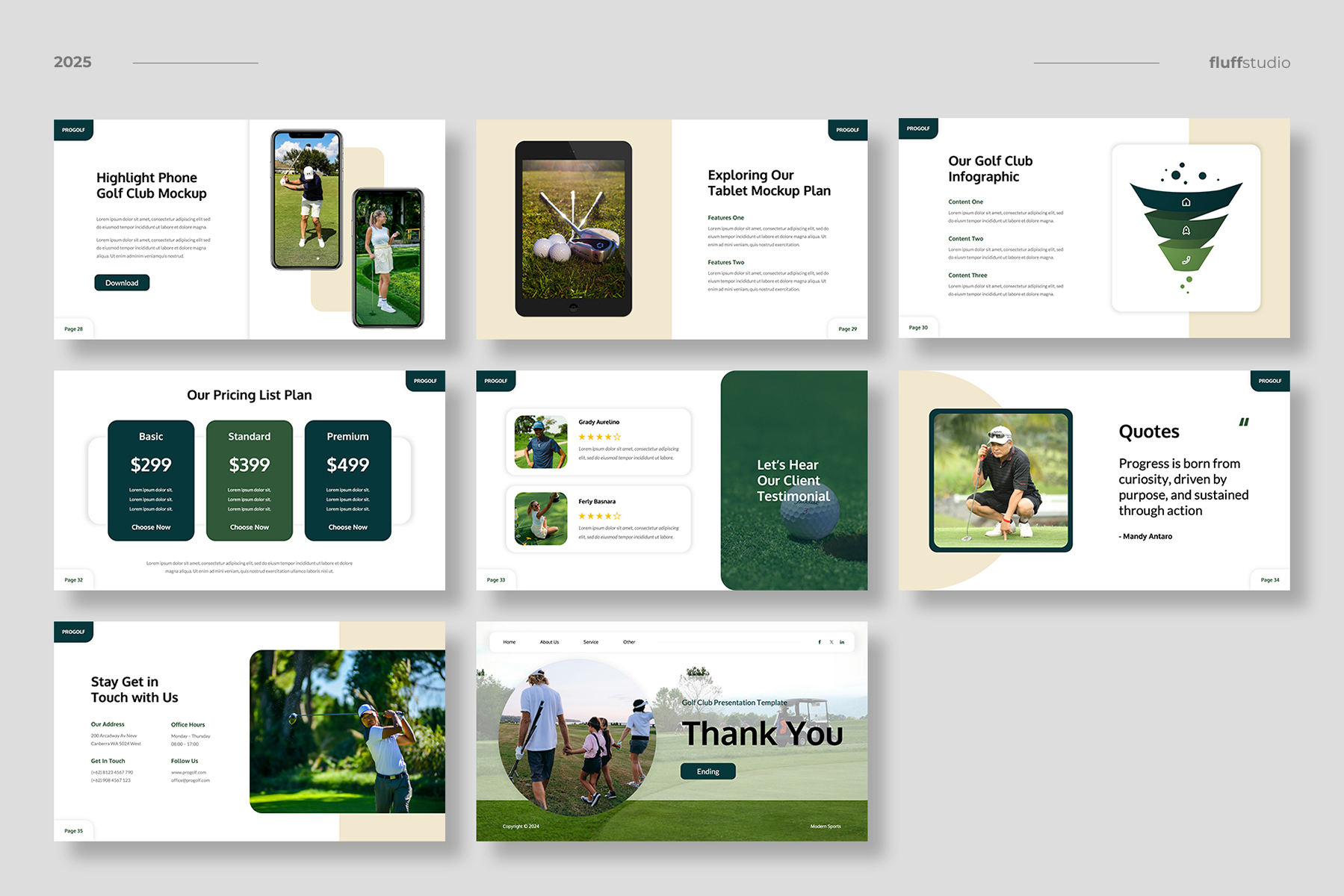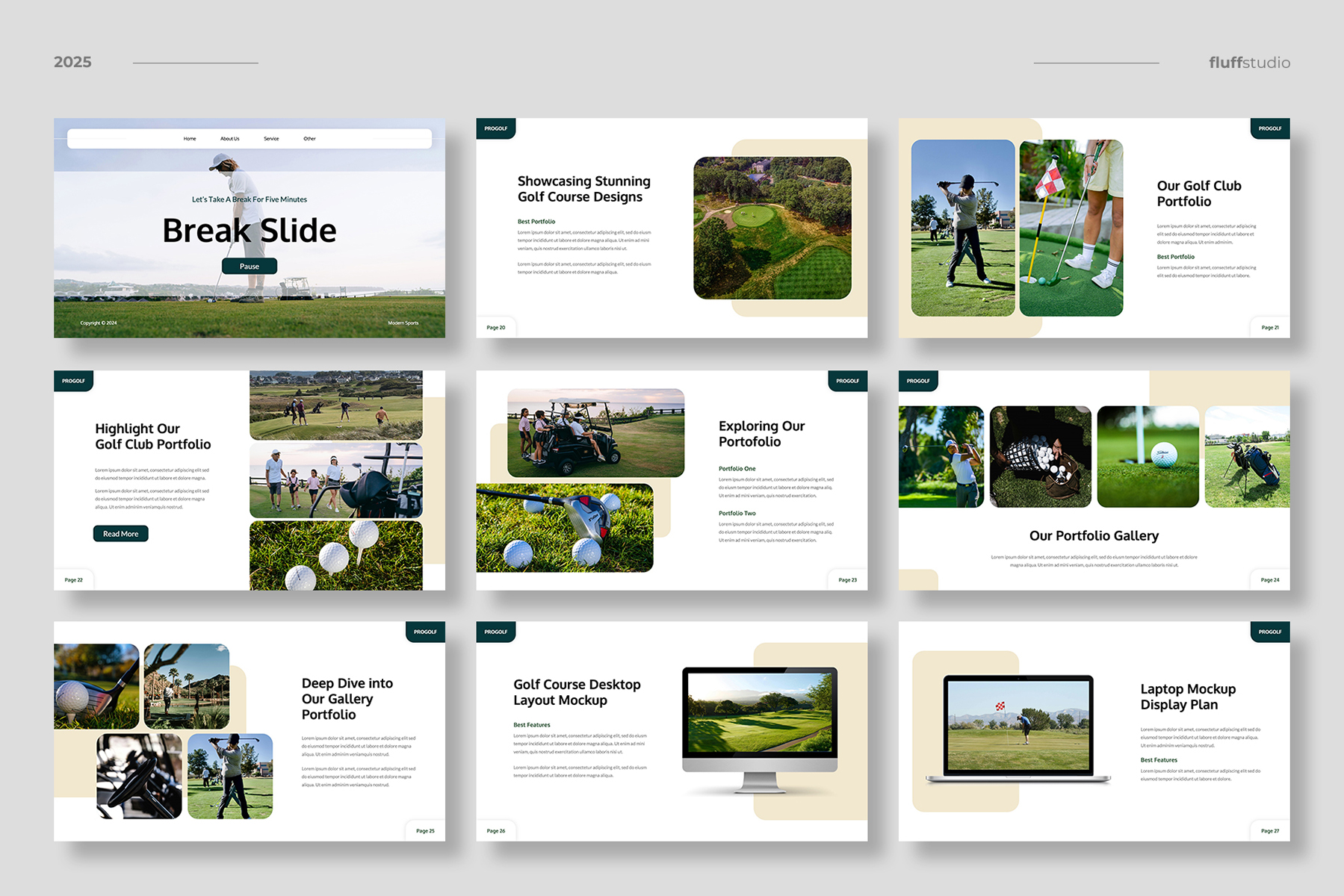 Perfect for any kind of golf sport business, golf club, golf trainer & academy, golf court & course, golf event & tournament, golf equipment, golfwear, golf clothing brand & lifestyle, project proposal, startup pitch deck, portfolio, company profile, marketing kit, etc.