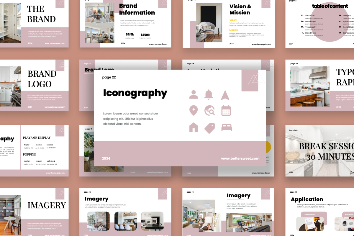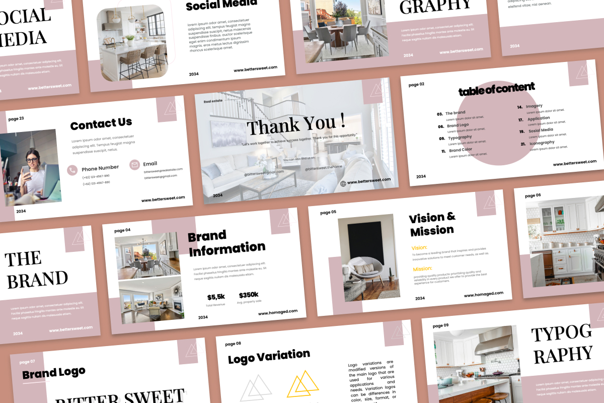 This real estate brand guideline Google Slides deck provides a structured, visually appealing way to present your brand’s identity. Using minimalist design, modular grids, and bold fonts, it ensures clarity and professionalism. Perfect for marketers, designers, and real estate firms looking for a modern presentation solution.
