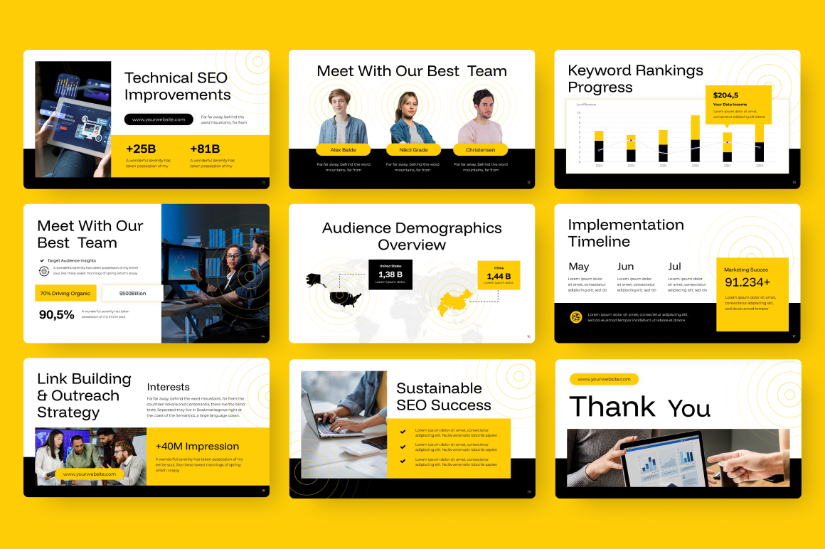 Elevate your presentations with the “SEO Marketing Plan” Google Slides template. With 20 professionally designed slides, full animations, and easy editing capabilities, this template empowers you to create captivating and impactful presentations effortlessly. Impress your audience, deliver your message with style, and make a lasting impact. Download now and take your presentations to new heights!