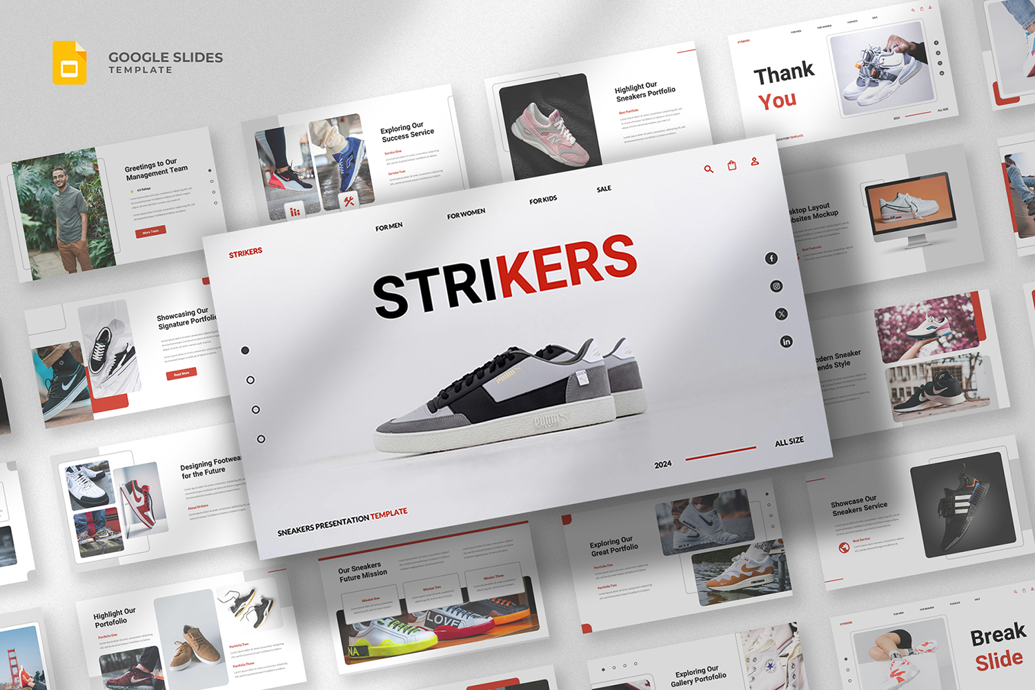 Perfect for any kind of shoes & sneakers store, footwear & fashion brand, sports shoes company, sportswear & streetwear, project proposal, startup pitch deck, portfolio, company profile, marketing kit, etc.