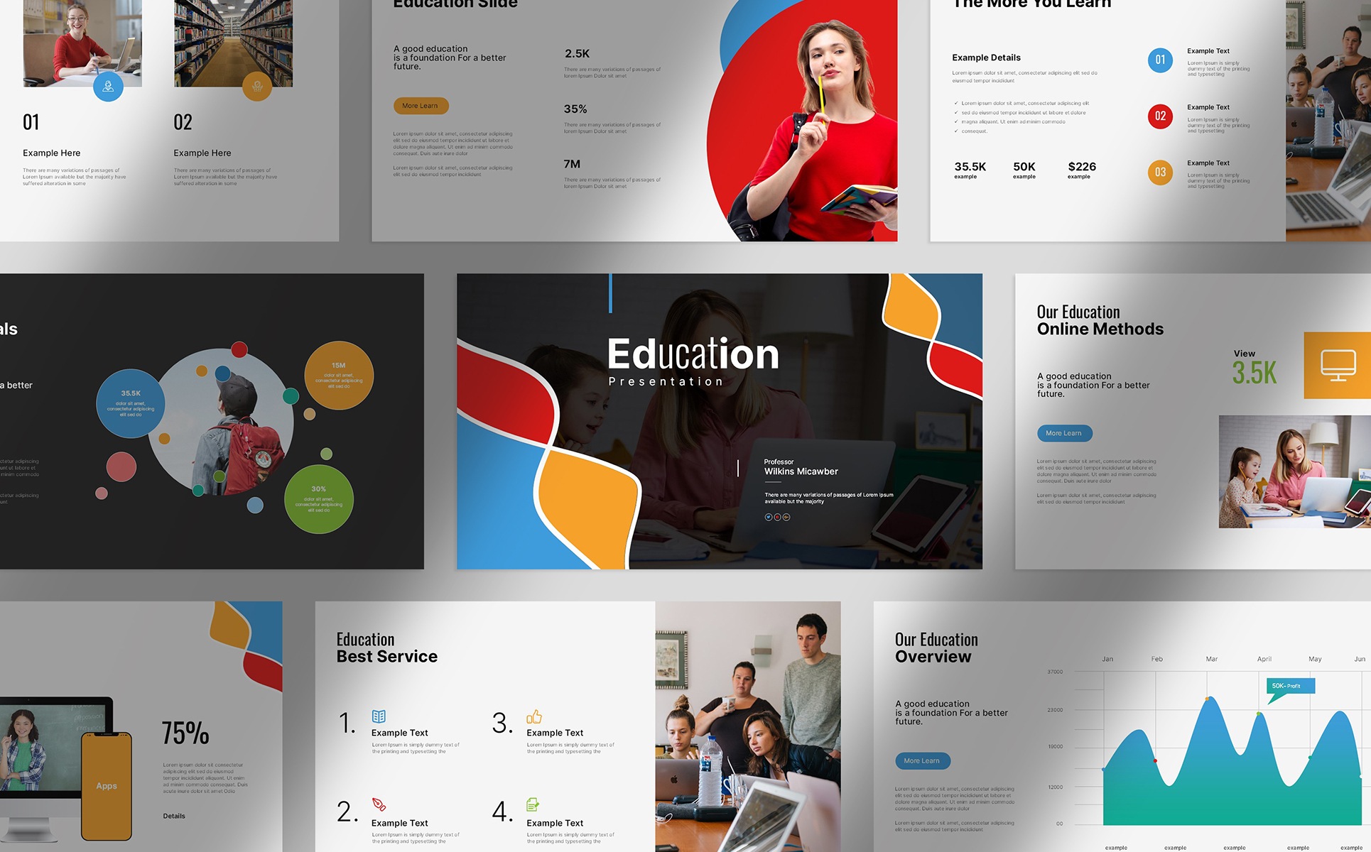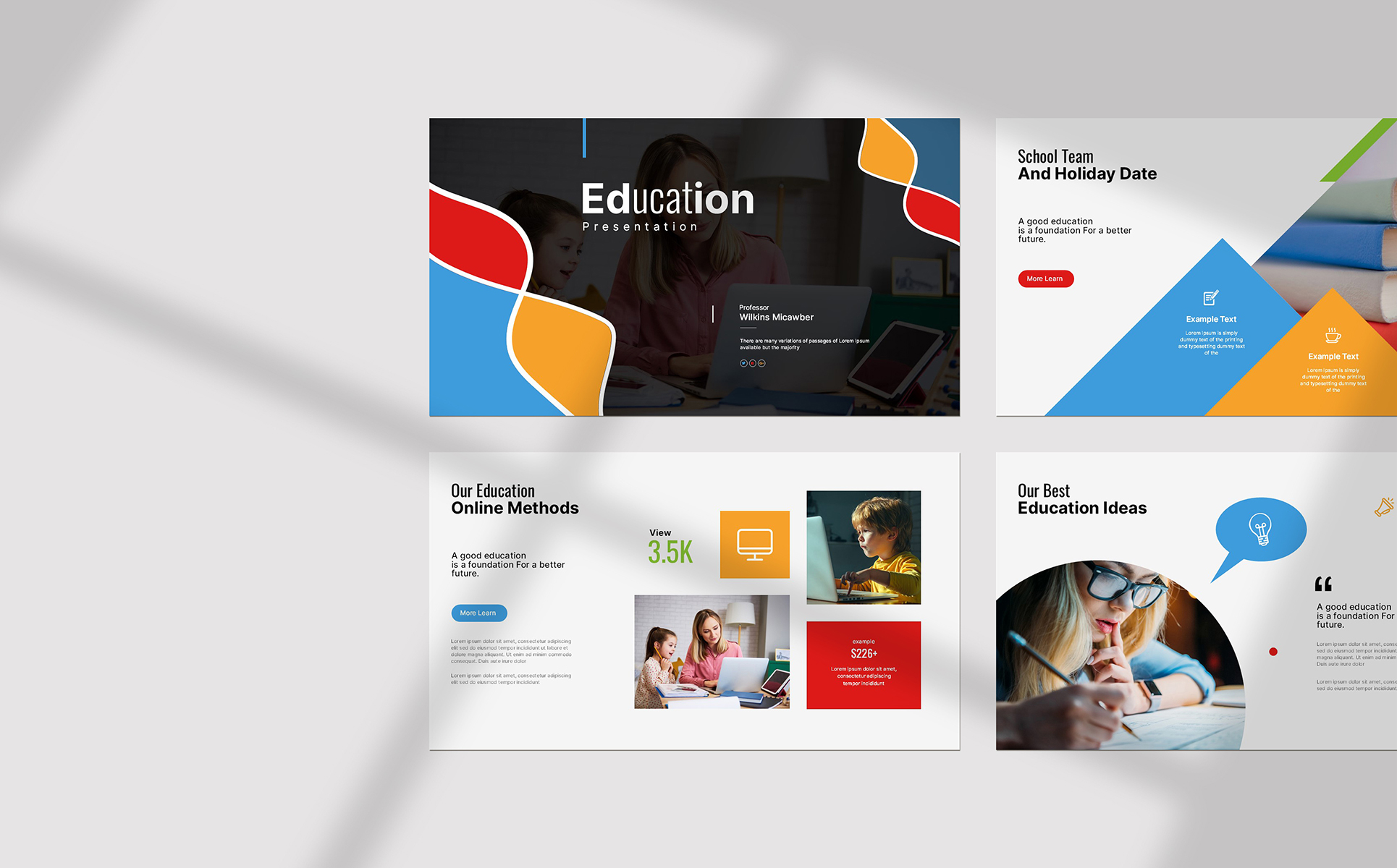 Education Google Slide Presentation Template allows you to simply add your logo, and images and edit your brand colors and typography
