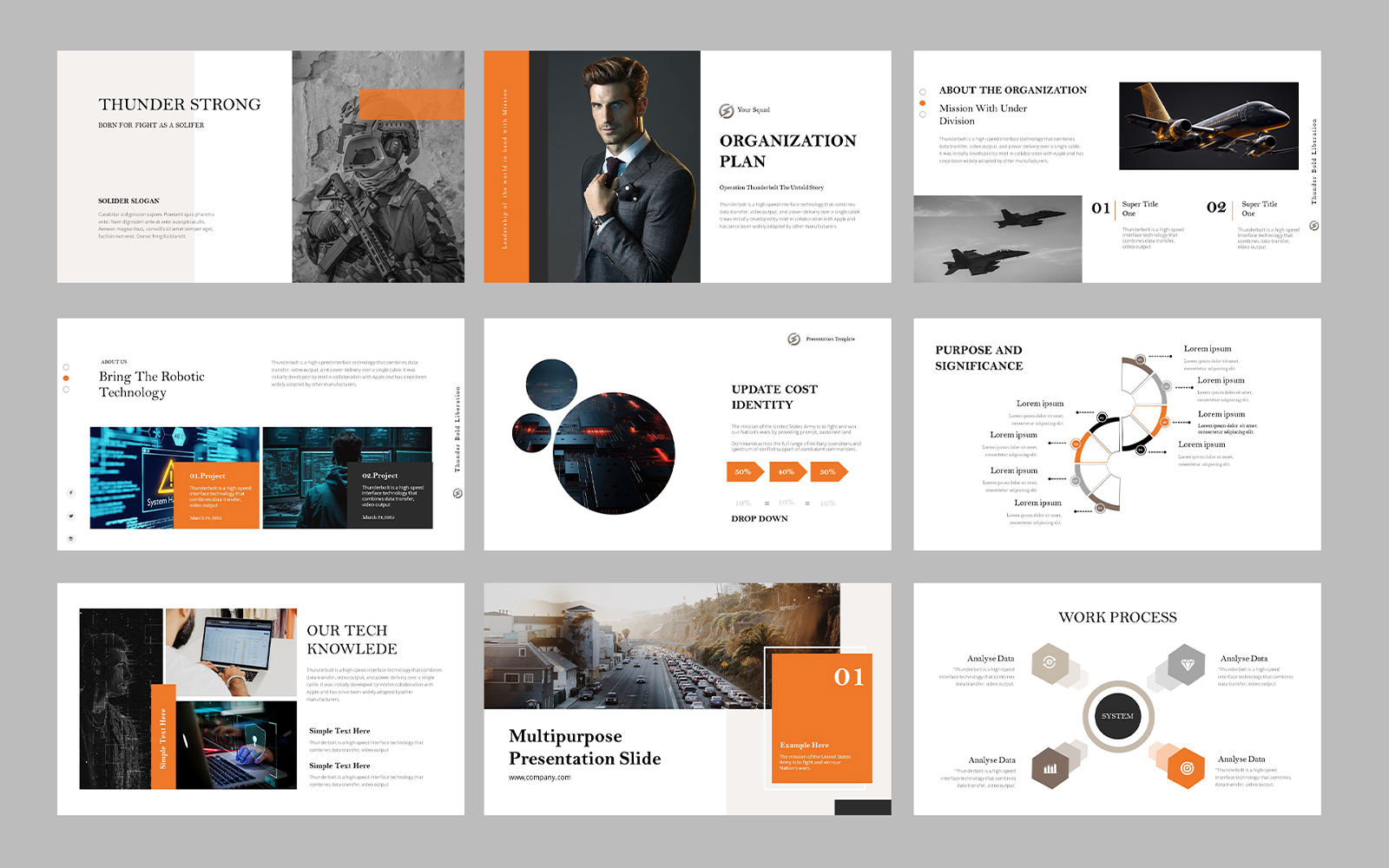 - Thunder Bold Google Slide Presentation Template Get a modern Google Slide Presentation that is beautifully designed and functional. This slide comes with infographic elements, charts graphs and icons. This presentation template is so versatile that it can be used in many different businesses. This Google Slide can be used for real estate market review, new business funding request, product reviews, marketing and promotions post-launch review, market research, social media impact studies, education and training. With this many slides you are able to make a a complete keynote presentation (deck) that best suit your needs.