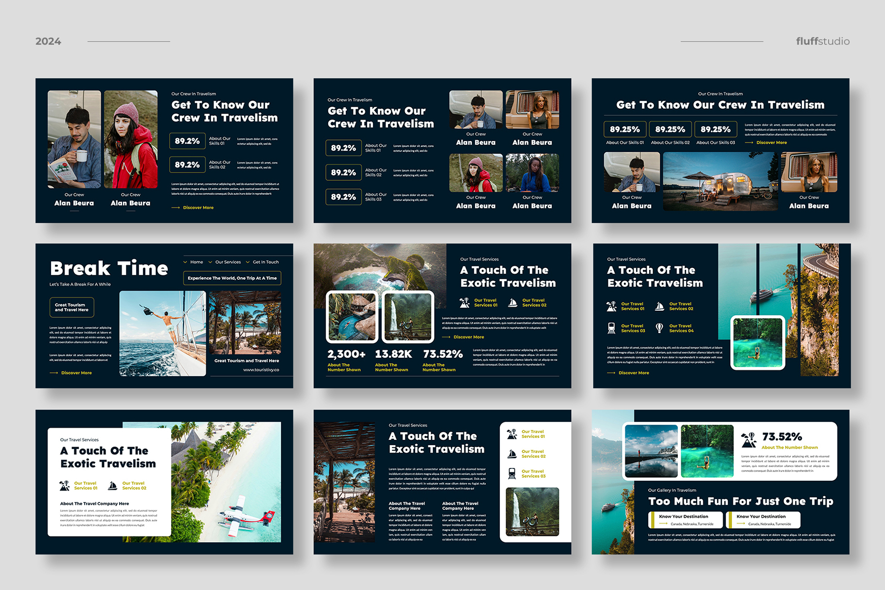 Perfect for tourism & adventure business, camping ground, tour operator, travel agency, trip planner, hotel, resort, tourist & vacation service, villa, project proposal, startup pitch deck, portfolio, company profile, marketing kit, etc.