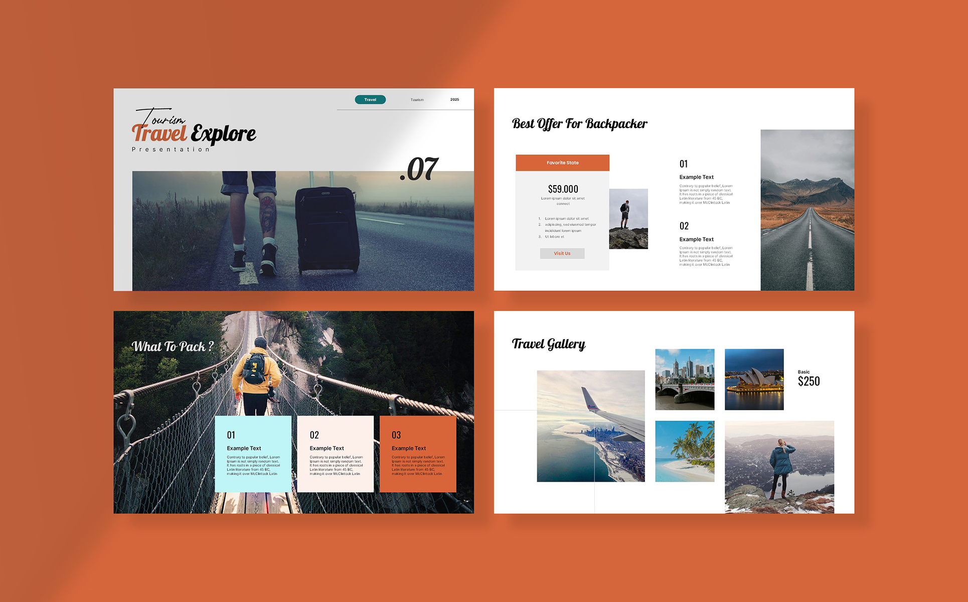Travel Guides Google Slide Template allows you to simply add your logo, images and edit your brand colors and typography and you’re good to go. Don’t waste your time, we’ve done all the hard work for you.