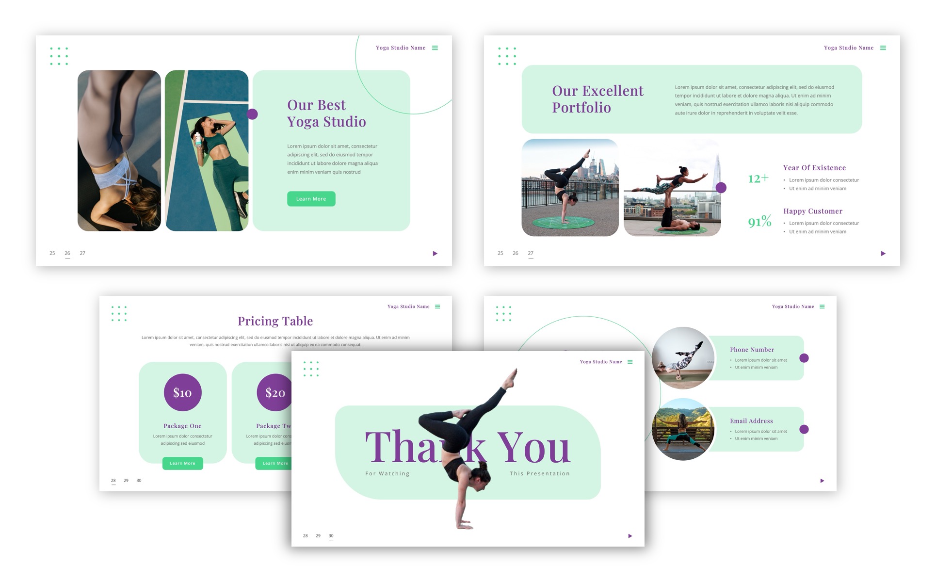Creative, Minimal, modern and Metropolis Presentation Template. Fully customization & super easy to use to fit any kind of business use. It is perfect for your yoga presentations.