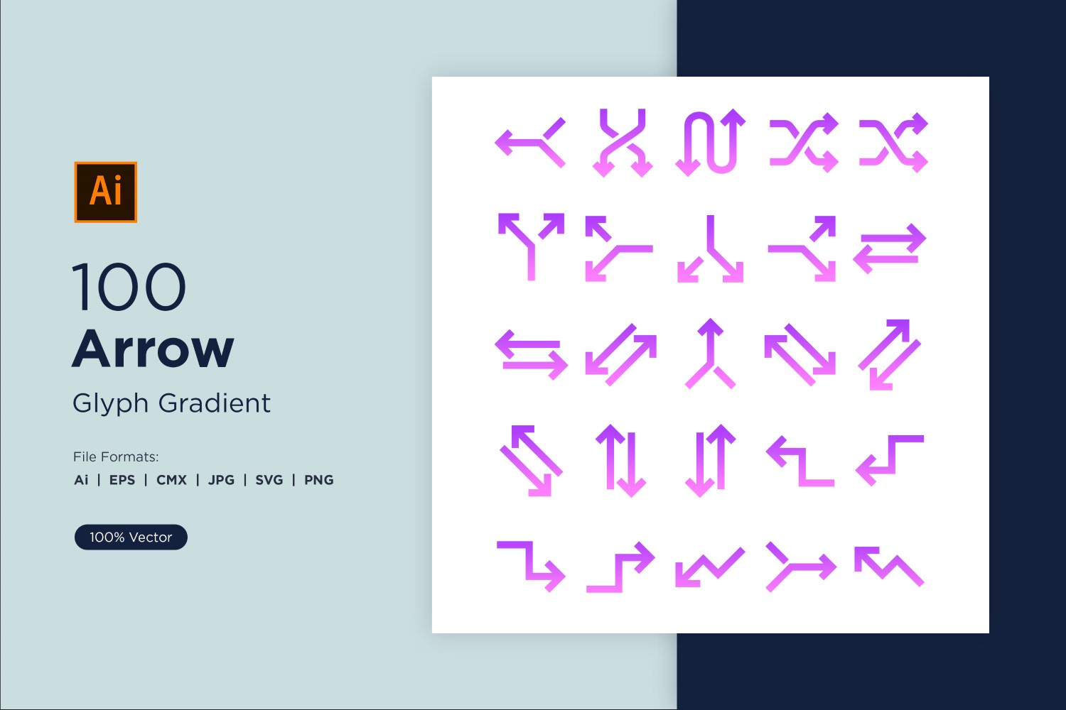 100 Arrow Glyph Gradient Icon Set