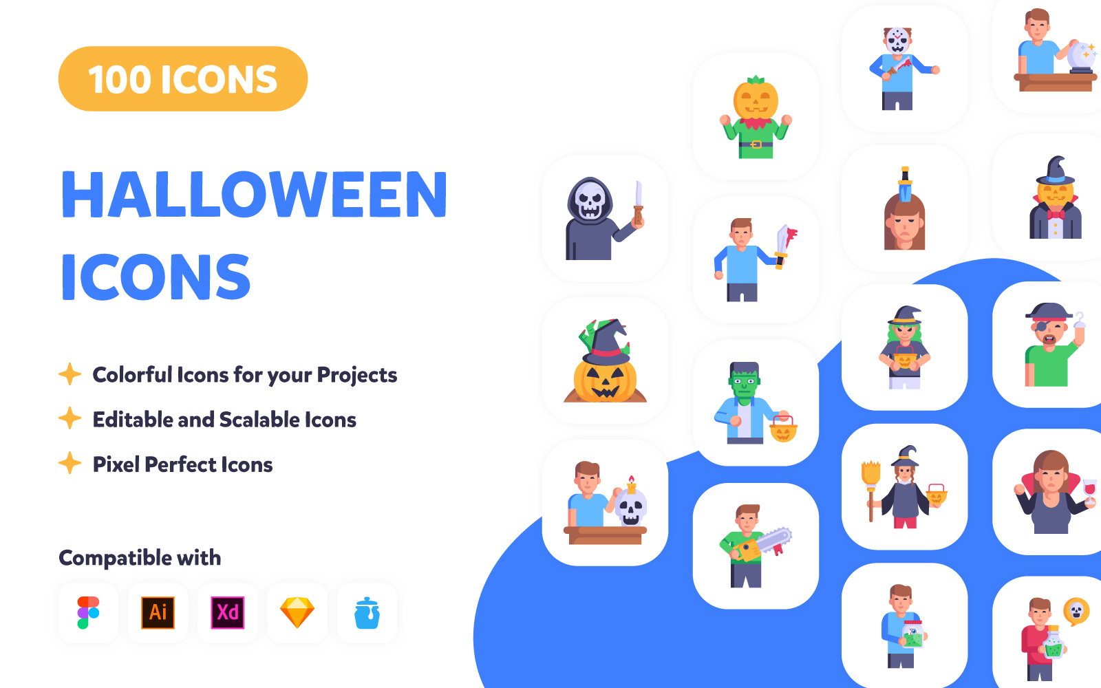 Make your projects related to Halloween celebrations more colorful, vibrant, and visually appealing by using these cool flat Halloween icons. You can easily customize and integrate these flat vectors with your projects.
