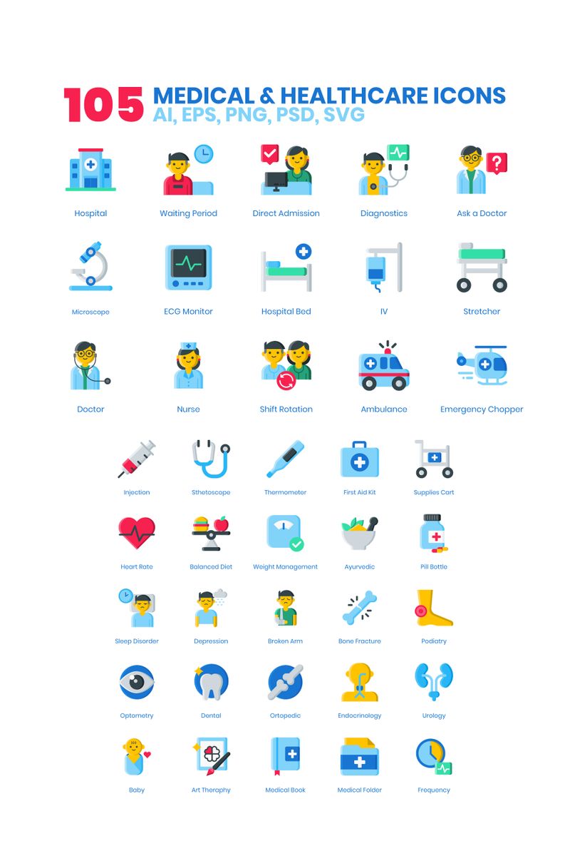 It is ultimately noble as well to help others in their medical issues, and that is what we hope to achieve with these 105 medical icons. We hope that you will be able to help others gain back their health or to keep their health free from any medical issues. You can use these icons as images in your app, visualizations for your presentation, or even pictures in your marketing plan! We want you to be free to explore these icons as we see you help the world!