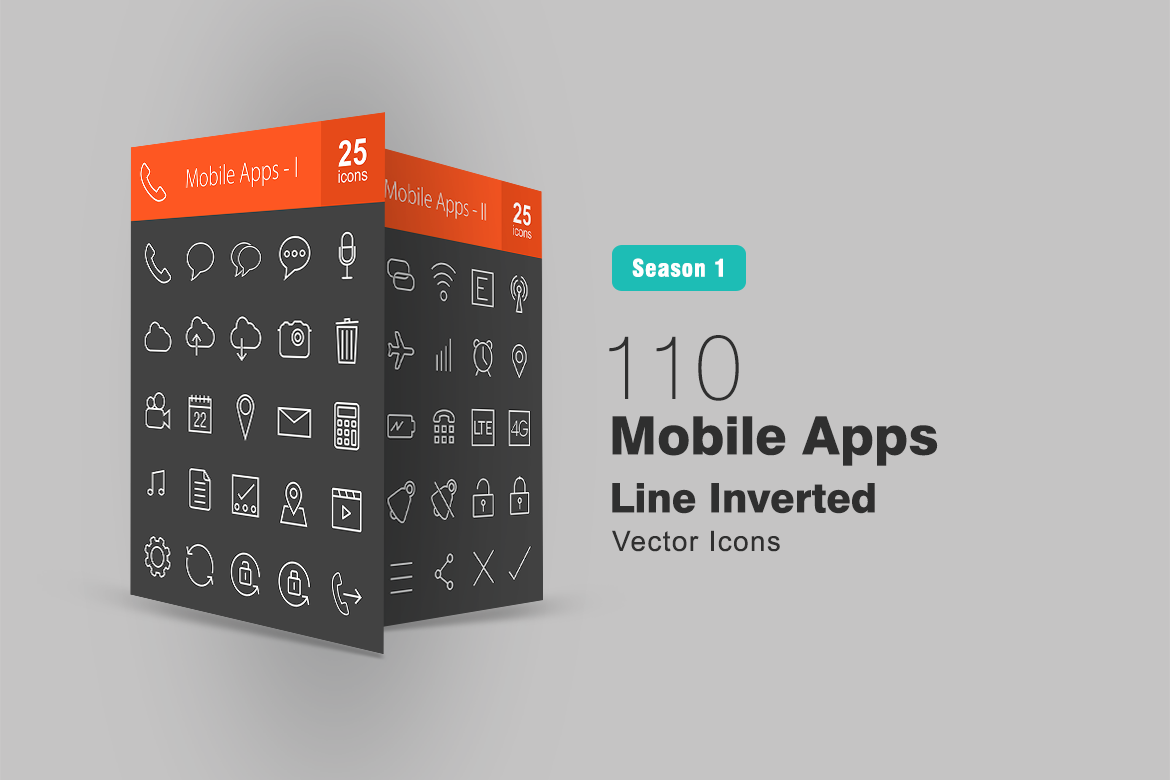 Download this premium 110 Mobile Apps Line Inverted Icon Set published on TemplateMonster.