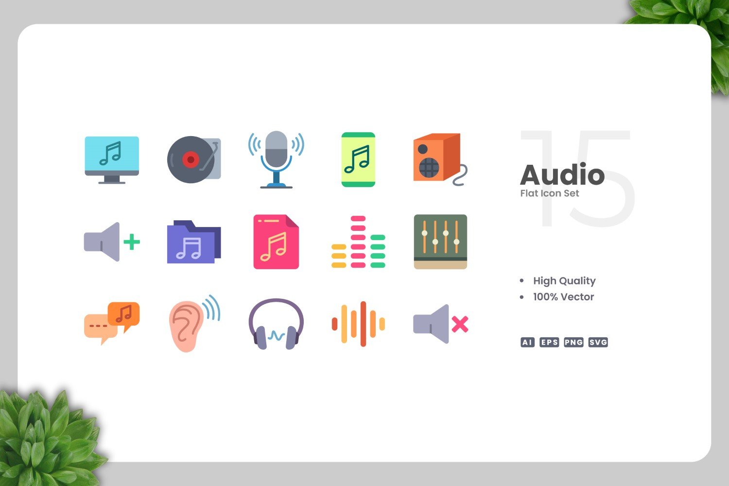 15 Audio Flat Icons Collection Icon Set