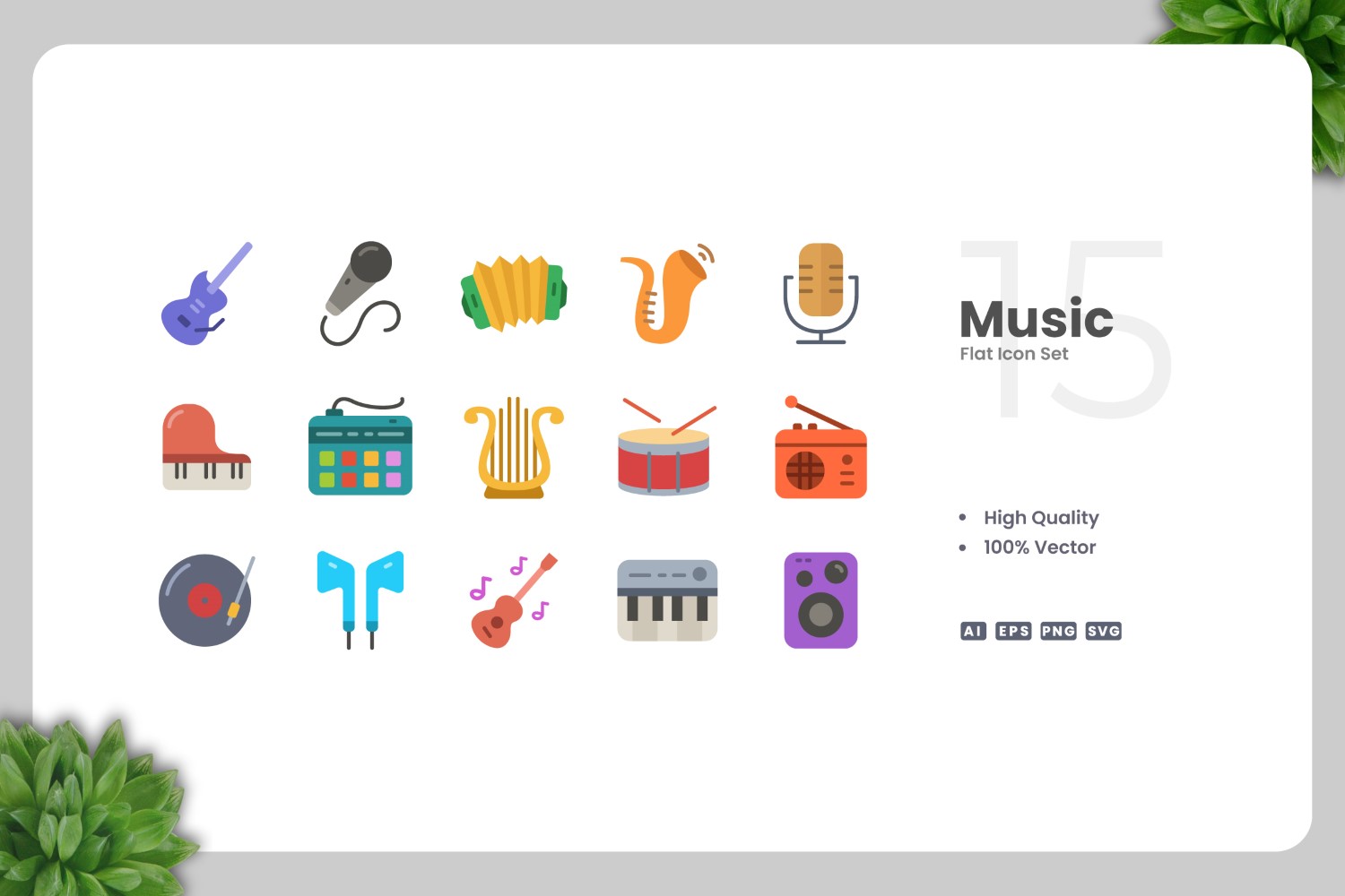 Set of 15 Music flat icons | Simple and clean design, perfect for websites, mobile apps, books, social media, infographics, flyer, print, banners, posters and many more. To resize or change color you can easily edit on vector software like Adobe Illustrator and CorelDRAW.