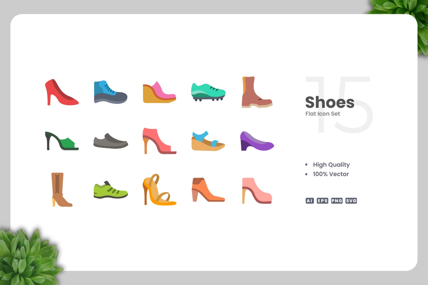 Set of 15 Shoes flat icons | Simple and clean design, perfect for websites, mobile apps, books, social media, infographics, flyer, print, banners, posters and many more. To resize or change color you can easily edit on vector software like Adobe Illustrator and CorelDRAW.