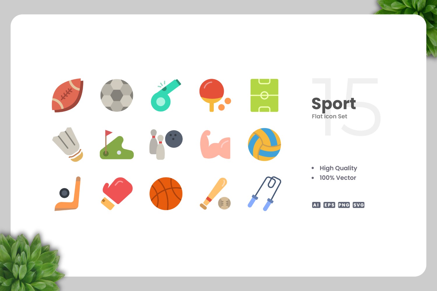 Set of 15 Sport flat icons | Simple and clean design, perfect for websites, mobile apps, books, social media, infographics, flyer, print, banners, posters and many more. To resize or change color you can easily edit on vector software like Adobe Illustrator and CorelDRAW.