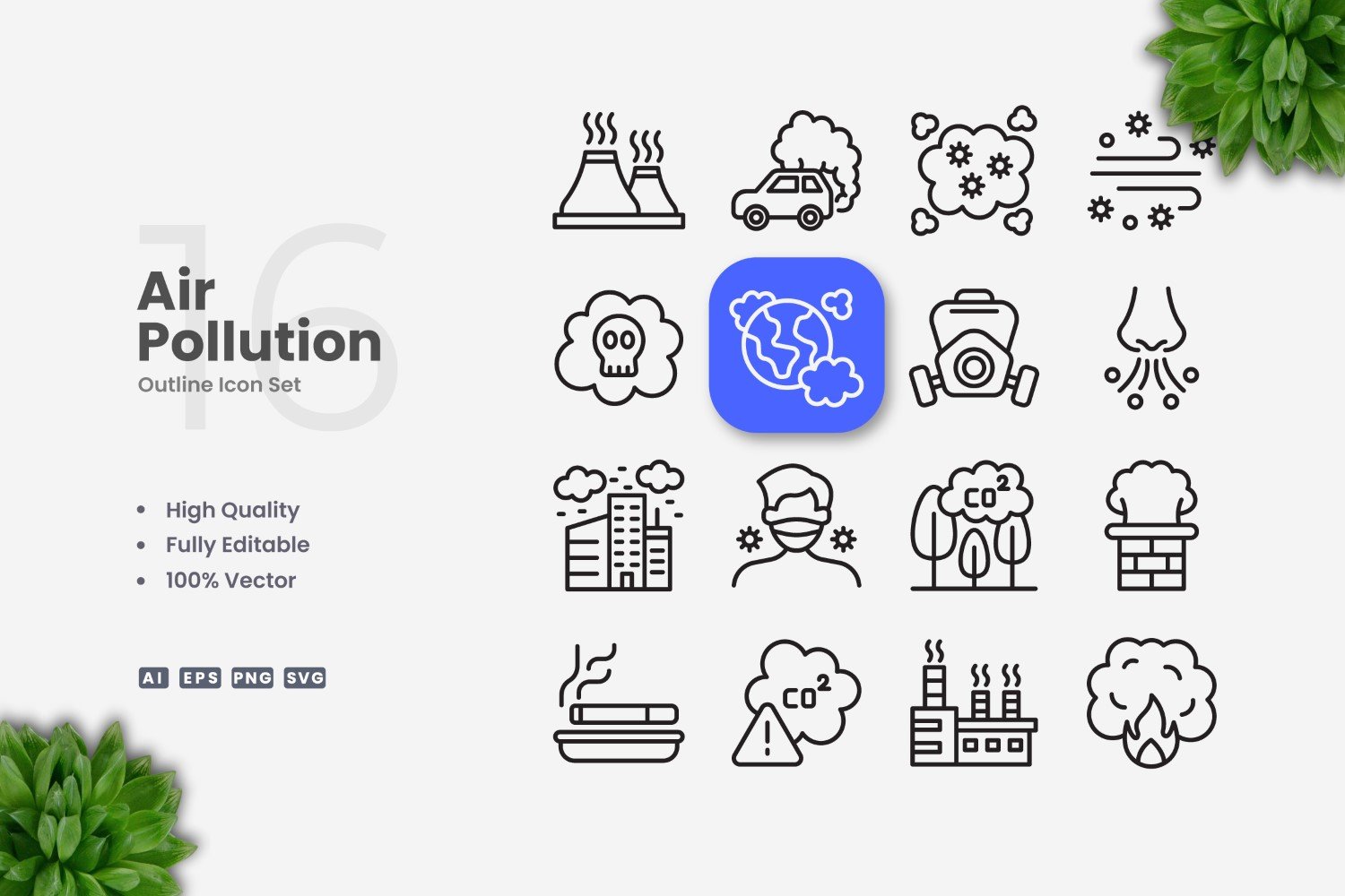 Set of 16 Air Pollution outline icons | Simple and clean design,perfect for websites, mobile apps, books, social media, infographics, flyer, print, banners, posters and many more. To resize, change color, or edit stroke weight ,you can easily edit on vector software like Adobe Illustrator and CorelDRAW.