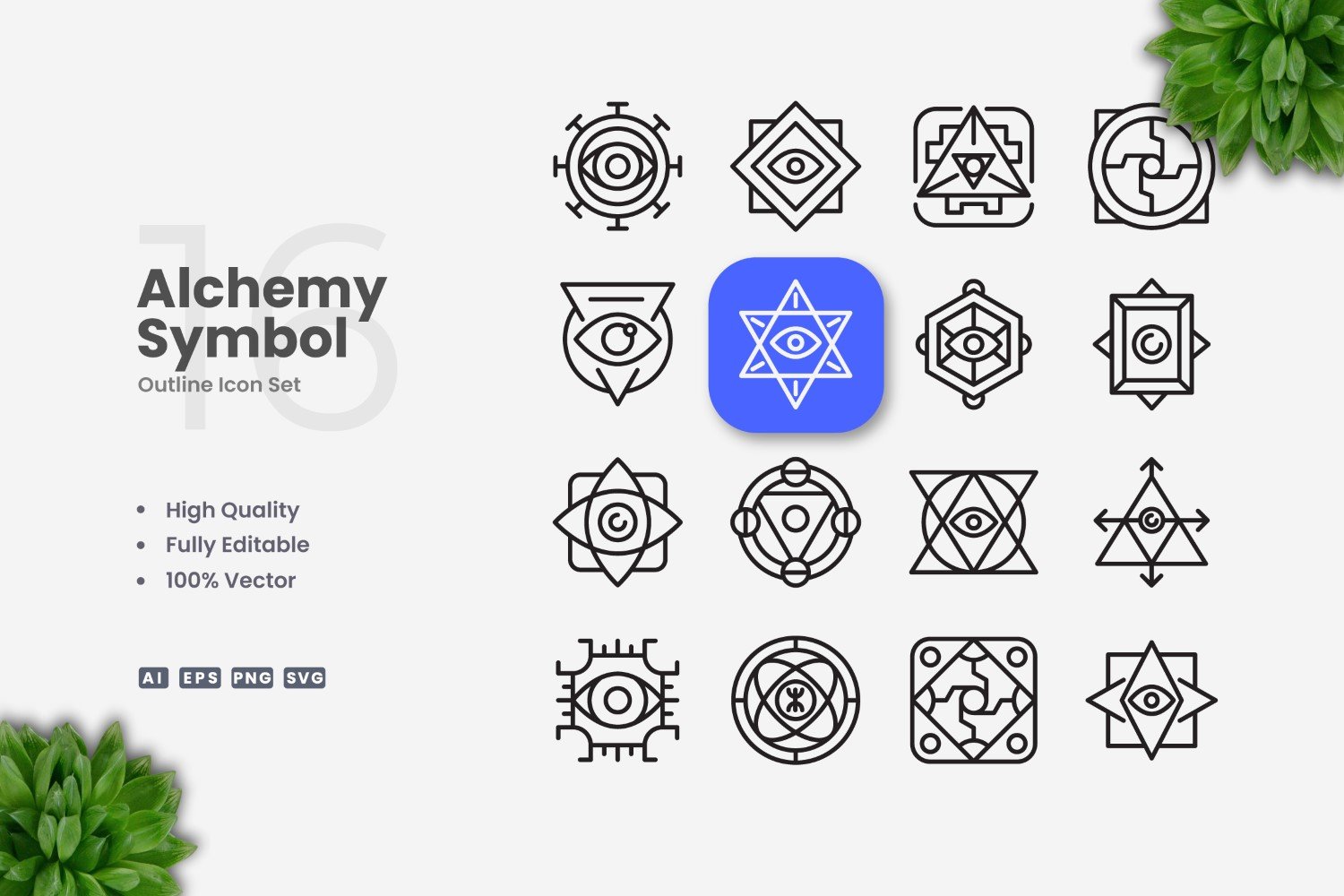 16 Alchemy Symbol Outline Icon Set