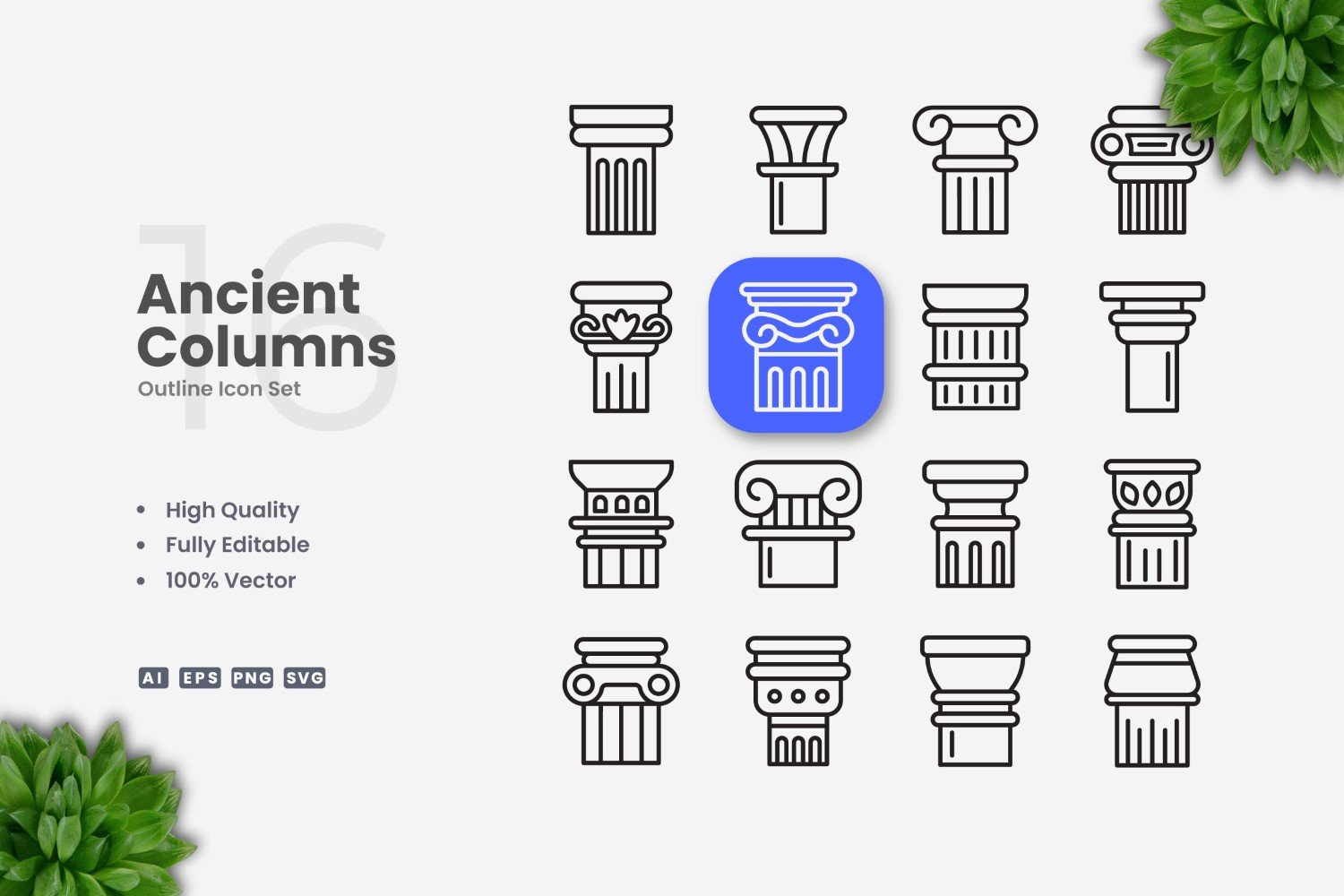 16 Ancient Columns Outline Icon Set
