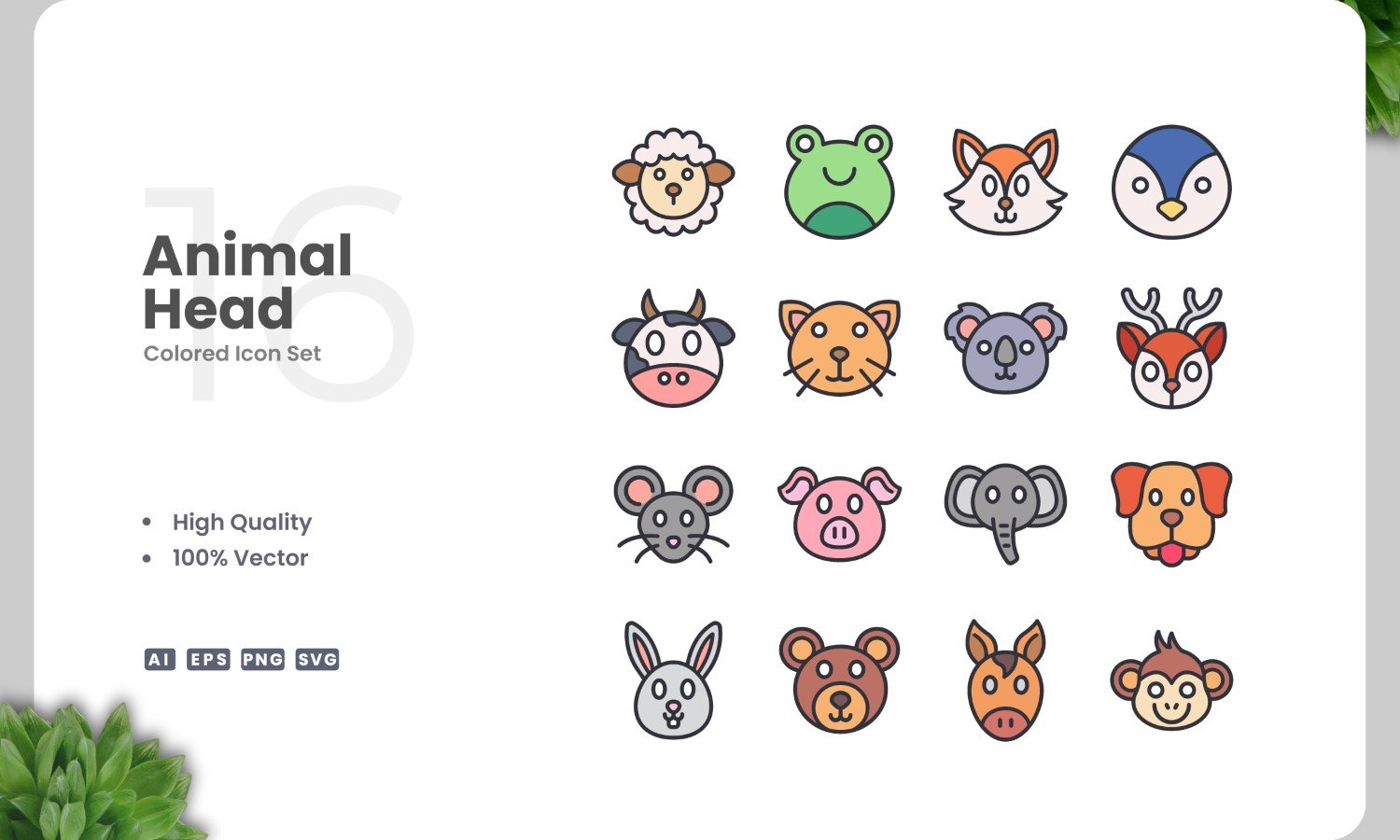 Set of 16 Animal Head color icons | Simple and clean design, perfect for websites, mobile apps, books, social media, infographics, flyer, print, banners, posters and many more. To resize or change color you can easily edit on vector software like Adobe Illustrator and CorelDRAW.