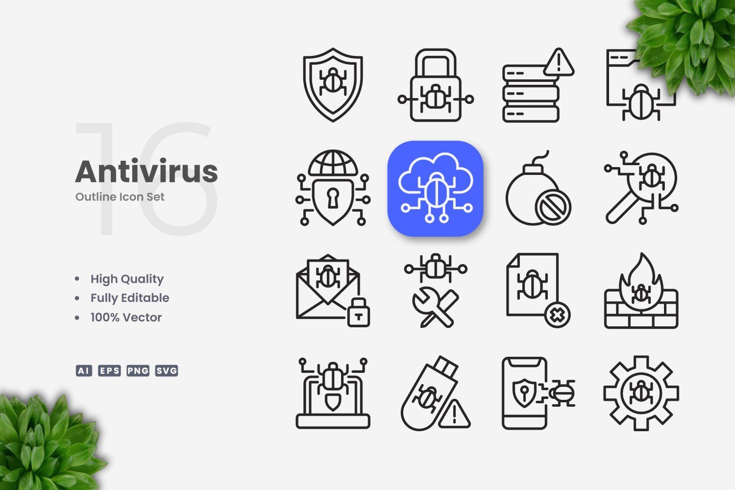 Set of 16 Antivirus outline icons | Simple and clean design,perfect for websites, mobile apps, books, social media, infographics, flyer, print, banners, posters and many more. To resize, change color, or edit stroke weight ,you can easily edit on vector software like Adobe Illustrator and CorelDRAW.