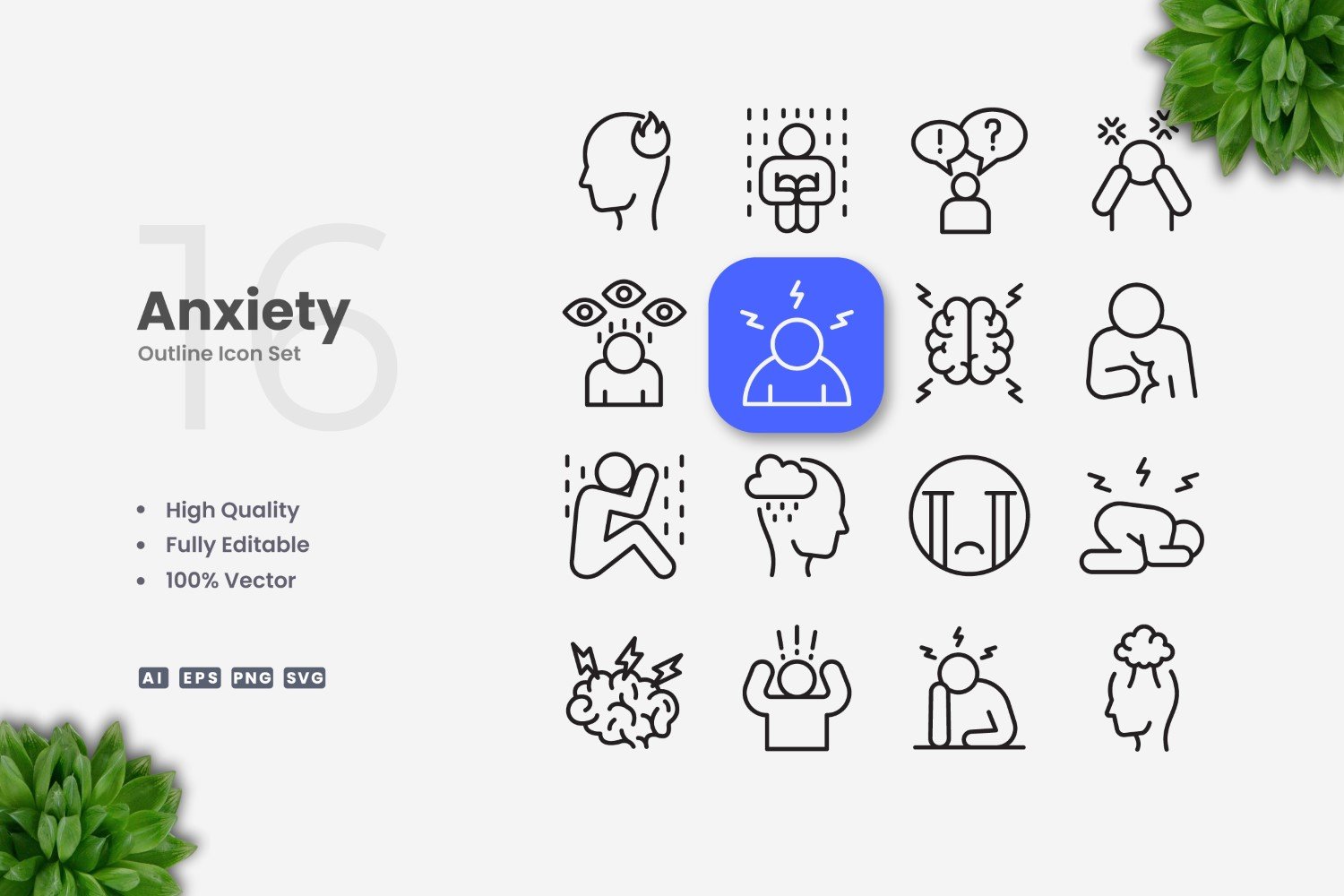Set of 16 Anxiety outline icons | Simple and clean design,perfect for websites, mobile apps, books, social media, infographics, flyer, print, banners, posters and many more. To resize, change color, or edit stroke weight ,you can easily edit on vector software like Adobe Illustrator and CorelDRAW.