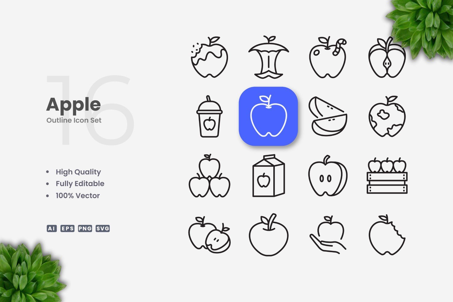 Set of 16 APPLE outline icons | Simple and clean design,perfect for websites, mobile apps, books, social media, infographics, flyer, print, banners, posters and many more. To resize, change color, or edit stroke weight ,you can easily edit on vector software like Adobe Illustrator and CorelDRAW.