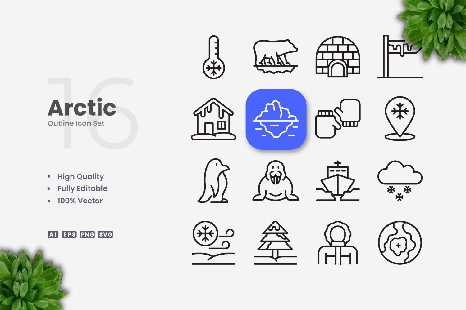 Set of 16 ARCTIC outline icons | Simple and clean design,perfect for websites, mobile apps, books, social media, infographics, flyer, print, banners, posters and many more. To resize, change color, or edit stroke weight ,you can easily edit on vector software like Adobe Illustrator and CorelDRAW.