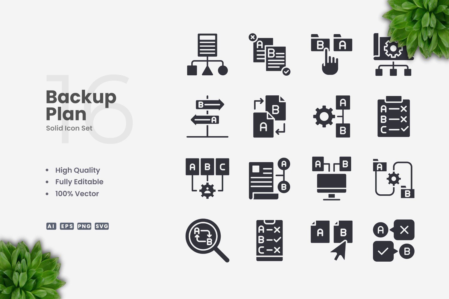 16 Backup Plan Solid Icons Set Icon Set