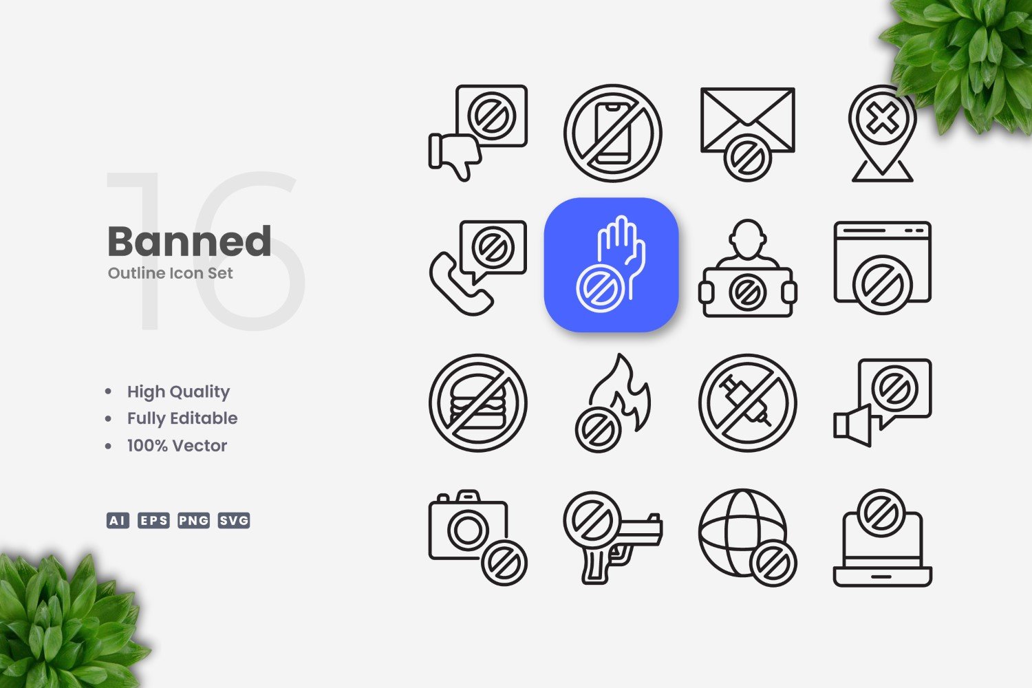 16 Banned Outline Icon Set