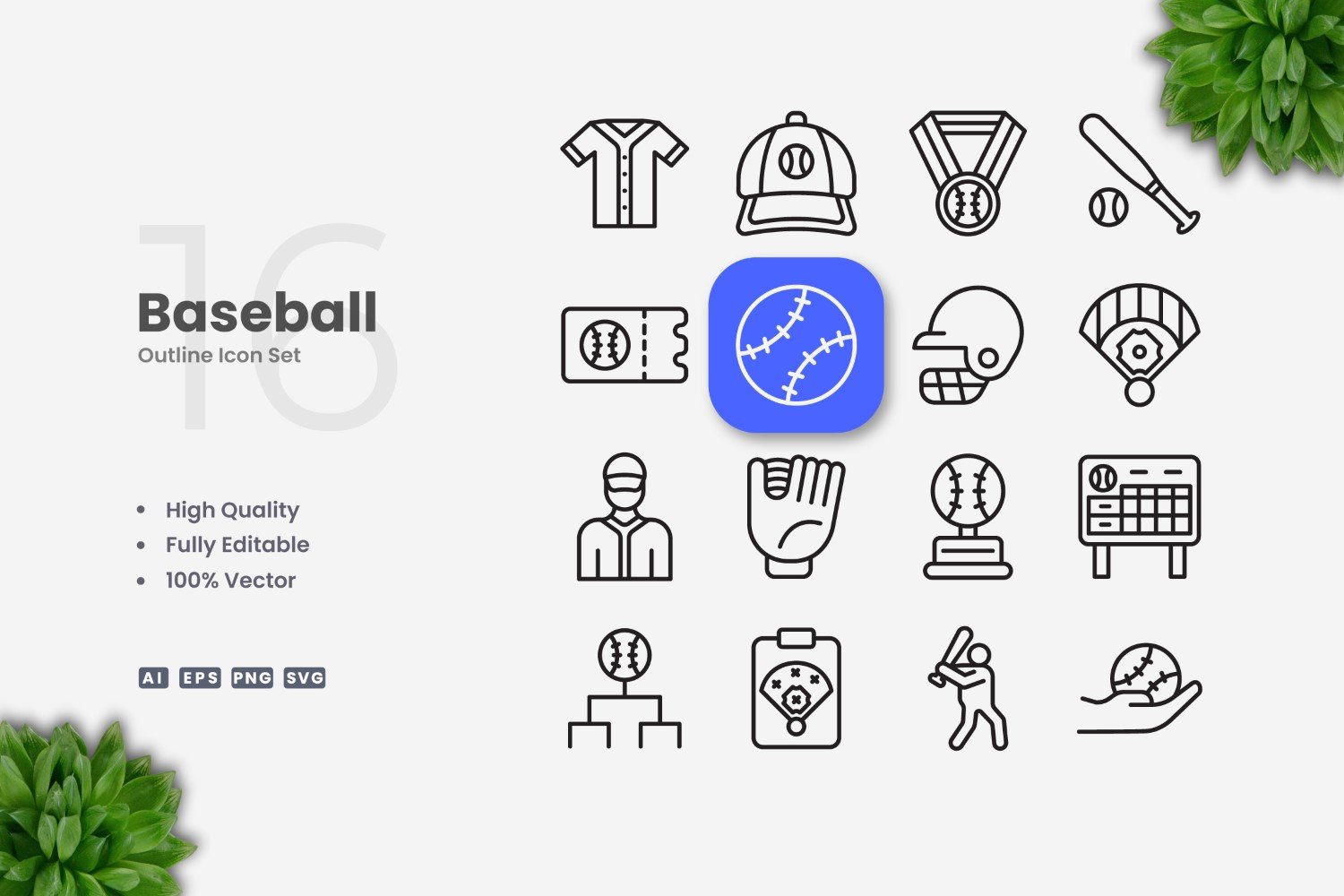 Set of 16 BASEBALL outline icons | Simple and clean design,perfect for websites, mobile apps, books, social media, infographics, flyer, print, banners, posters and many more. To resize, change color, or edit stroke weight ,you can easily edit on vector software like Adobe Illustrator and CorelDRAW.