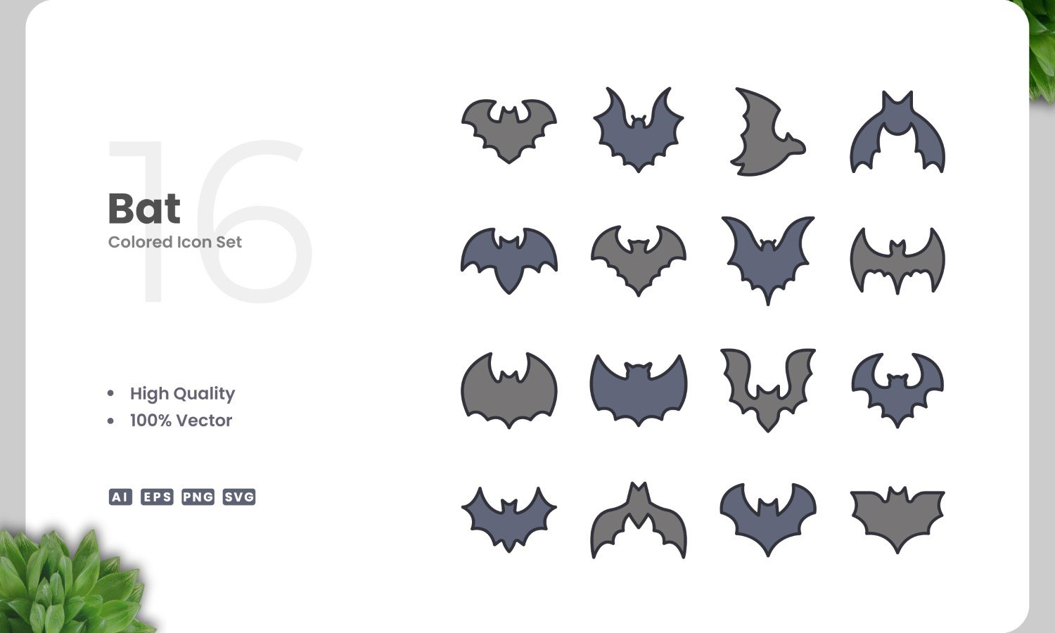 Set of 16 Bat color icons | Simple and clean design, perfect for websites, mobile apps, books, social media, infographics, flyer, print, banners, posters and many more. To resize or change color you can easily edit on vector software like Adobe Illustrator and CorelDRAW.