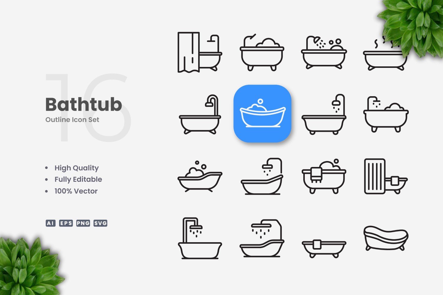 Set of 16 Bathtub outline icons | Simple and clean design,perfect for websites, mobile apps, books, social media, infographics, flyer, print, banners, posters and many more. To resize, change color, or edit stroke weight ,you can easily edit on vector software like Adobe Illustrator and CorelDRAW.