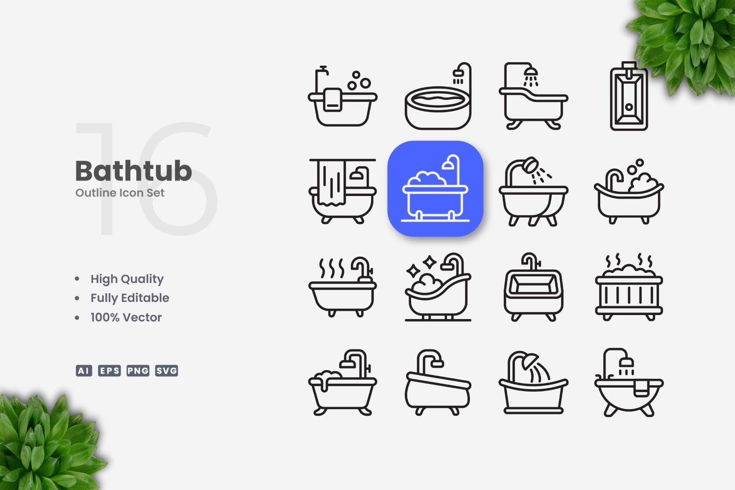 16 Bathtub2 Outline Icon Set