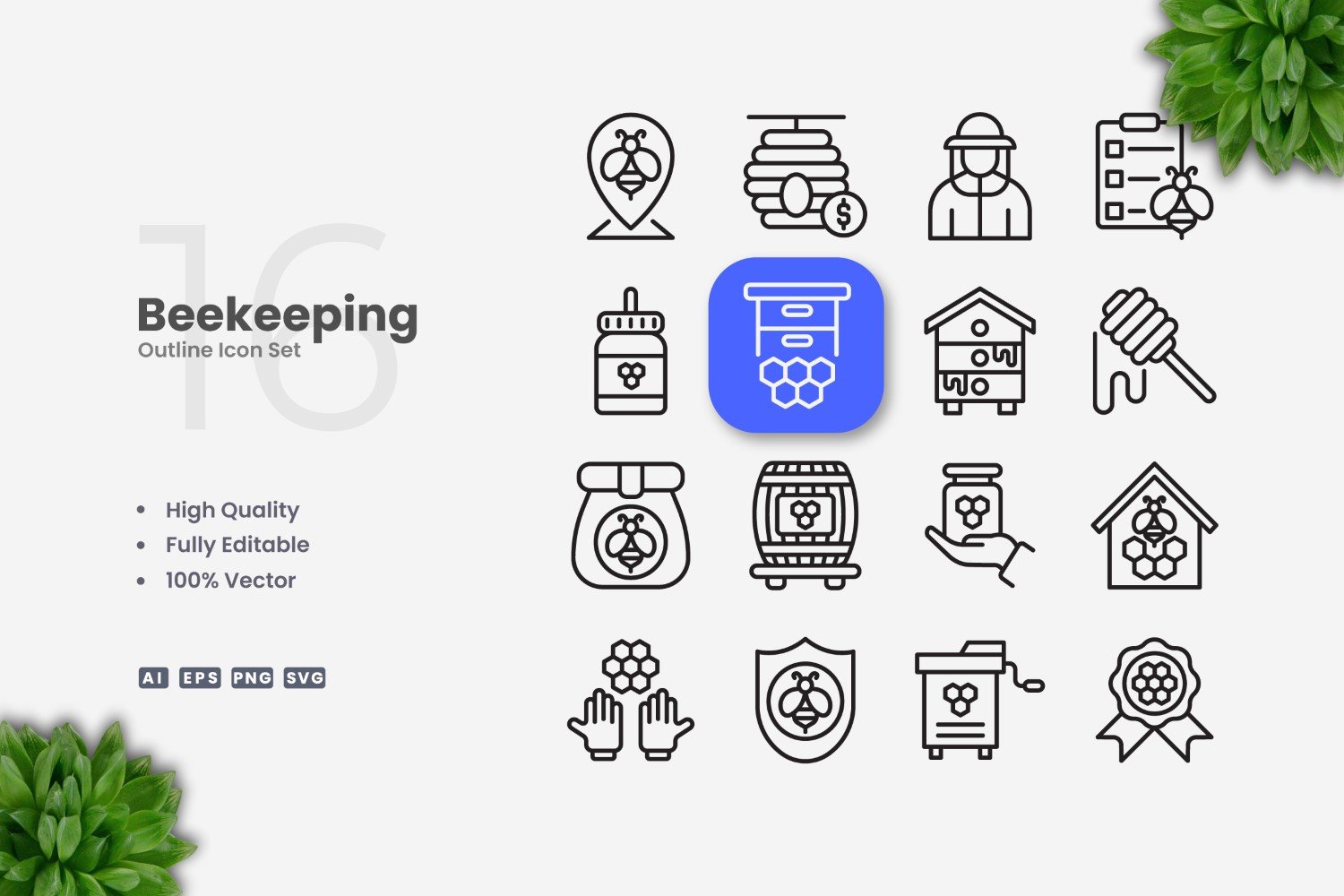 Set of 16 Beekeeping Outline Icons | Simple and clean design, perfect for websites, mobile apps, books, social media, infographics, flyer, print, banners, posters and many more. To resize or change color you can easily edit on vector software like Adobe Illustrator and CorelDRAW.