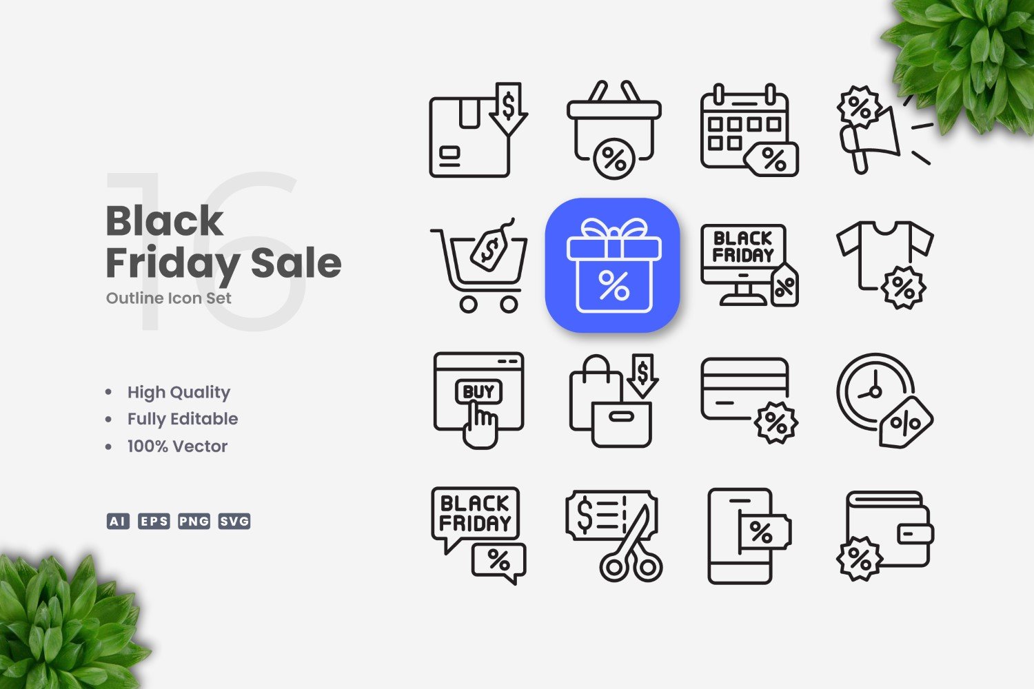 Set of 16 Black Friday Sale outline icons | Simple and clean design,perfect for websites, mobile apps, books, social media, infographics, flyer, print, banners, posters and many more. To resize, change color, or edit stroke weight ,you can easily edit on vector software like Adobe Illustrator and CorelDRAW.