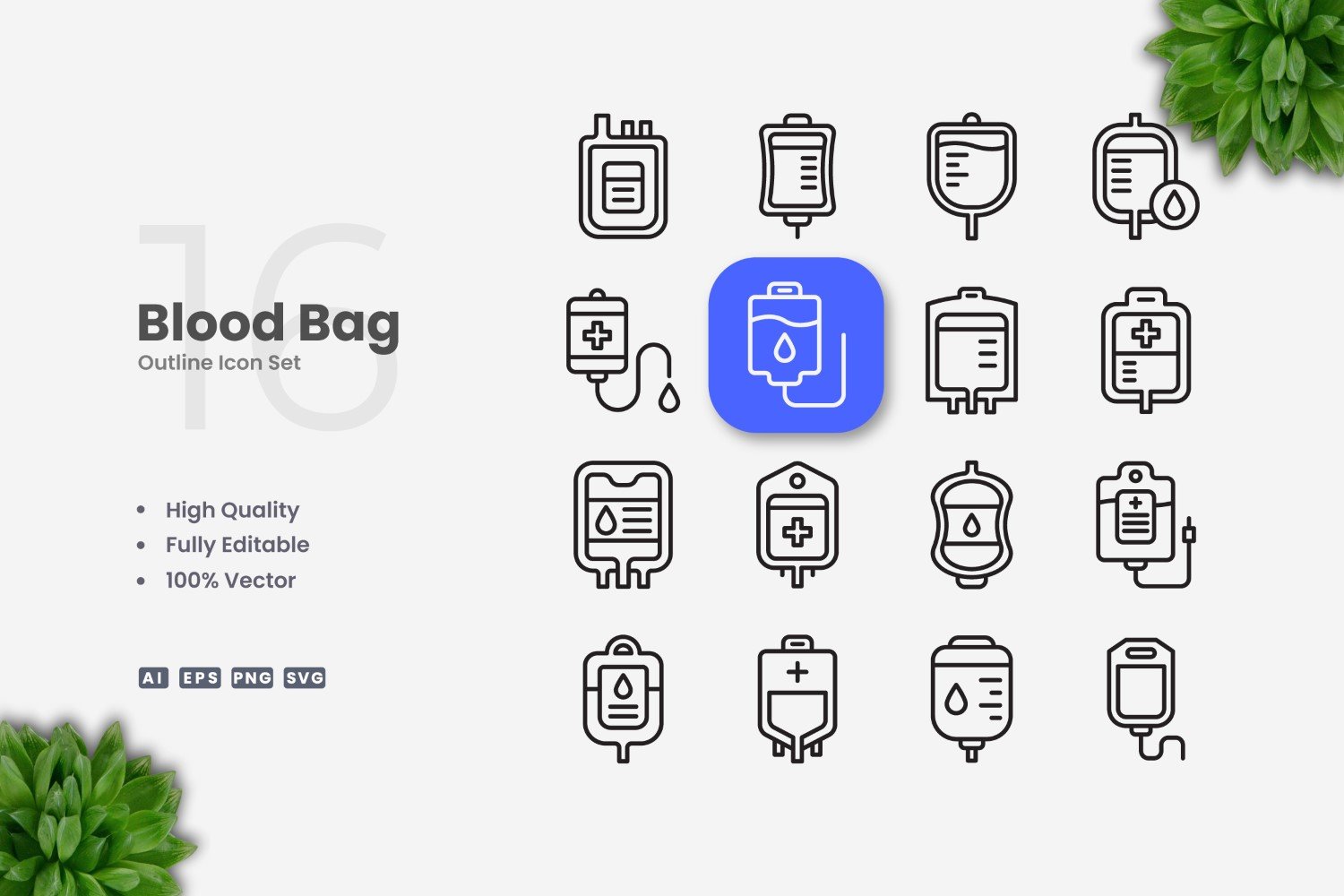 Set of 16 Blood Bag Outline Icons | Simple and clean design, perfect for websites, mobile apps, books, social media, infographics, flyer, print, banners, posters and many more. To resize or change color you can easily edit on vector software like Adobe Illustrator and CorelDRAW.