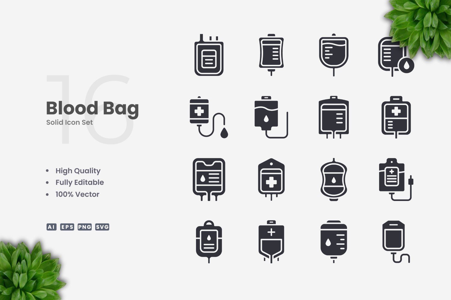 Set of 16 Blood Bag Solid Icons | Simple and clean design, perfect for websites, mobile apps, books, social media, infographics, flyer, print, banners, posters and many more. To resize or change color you can easily edit on vector software like Adobe Illustrator and CorelDRAW.