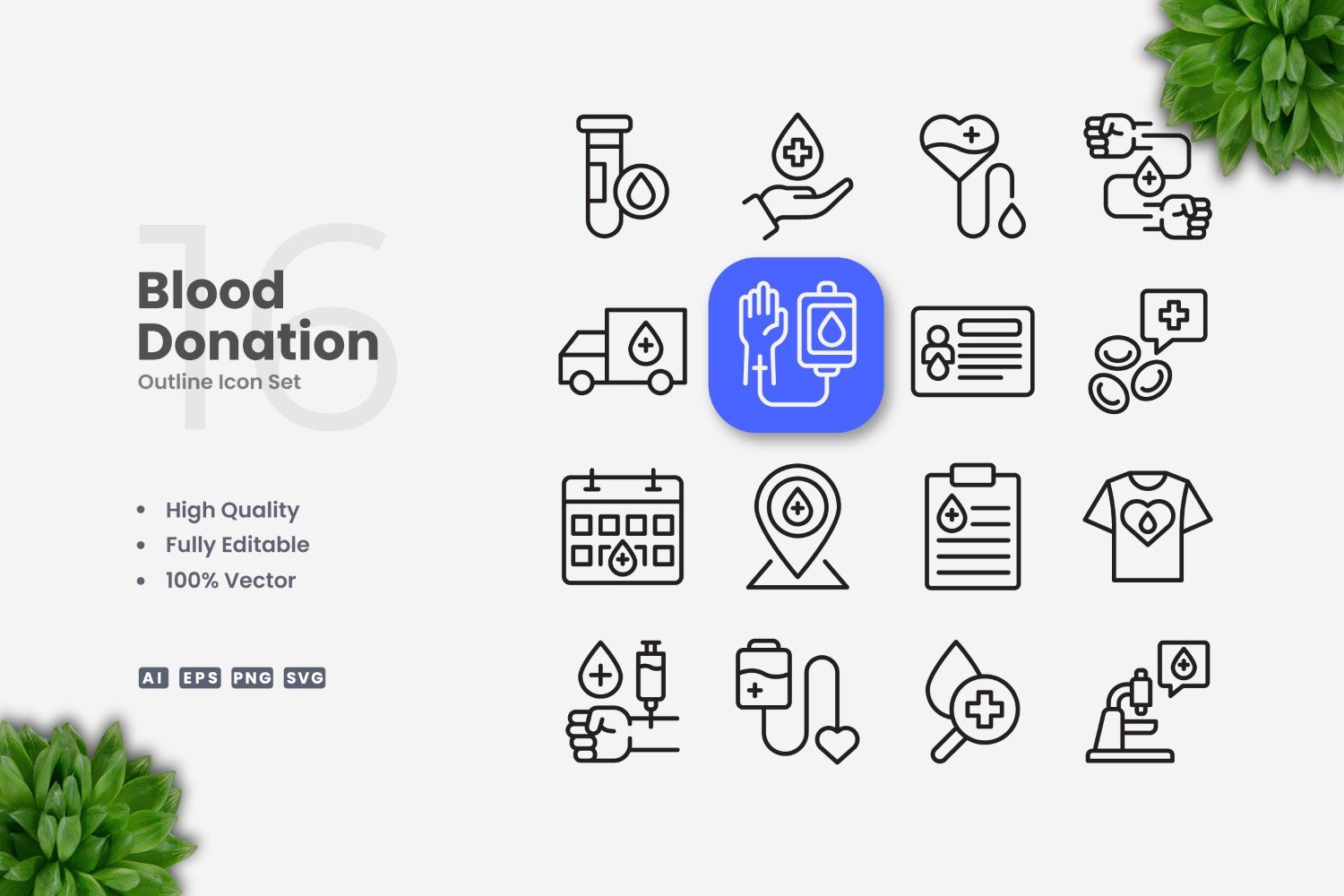 Set of 16 Blood Donation outline icons | Simple and clean design,perfect for websites, mobile apps, books, social media, infographics, flyer, print, banners, posters and many more. To resize, change color, or edit stroke weight ,you can easily edit on vector software like Adobe Illustrator and CorelDRAW.