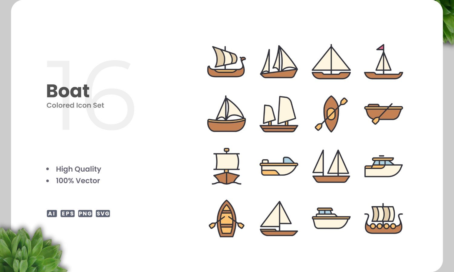 Set of 16 Boat color icons | Simple and clean design, perfect for websites, mobile apps, books, social media, infographics, flyer, print, banners, posters and many more. To resize or change color you can easily edit on vector software like Adobe Illustrator and CorelDRAW.