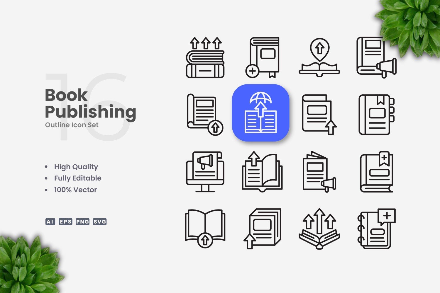 Set of 16 Book Publishing Outline Icons | Simple and clean design, perfect for websites, mobile apps, books, social media, infographics, flyer, print, banners, posters and many more. To resize or change color you can easily edit on vector software like Adobe Illustrator and CorelDRAW.