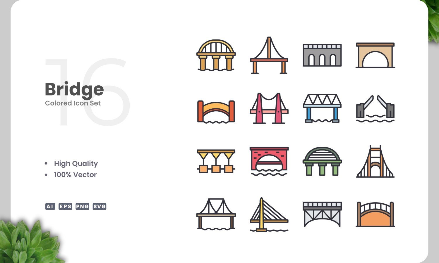 16 Bridge Icon Color Collection Icon Set